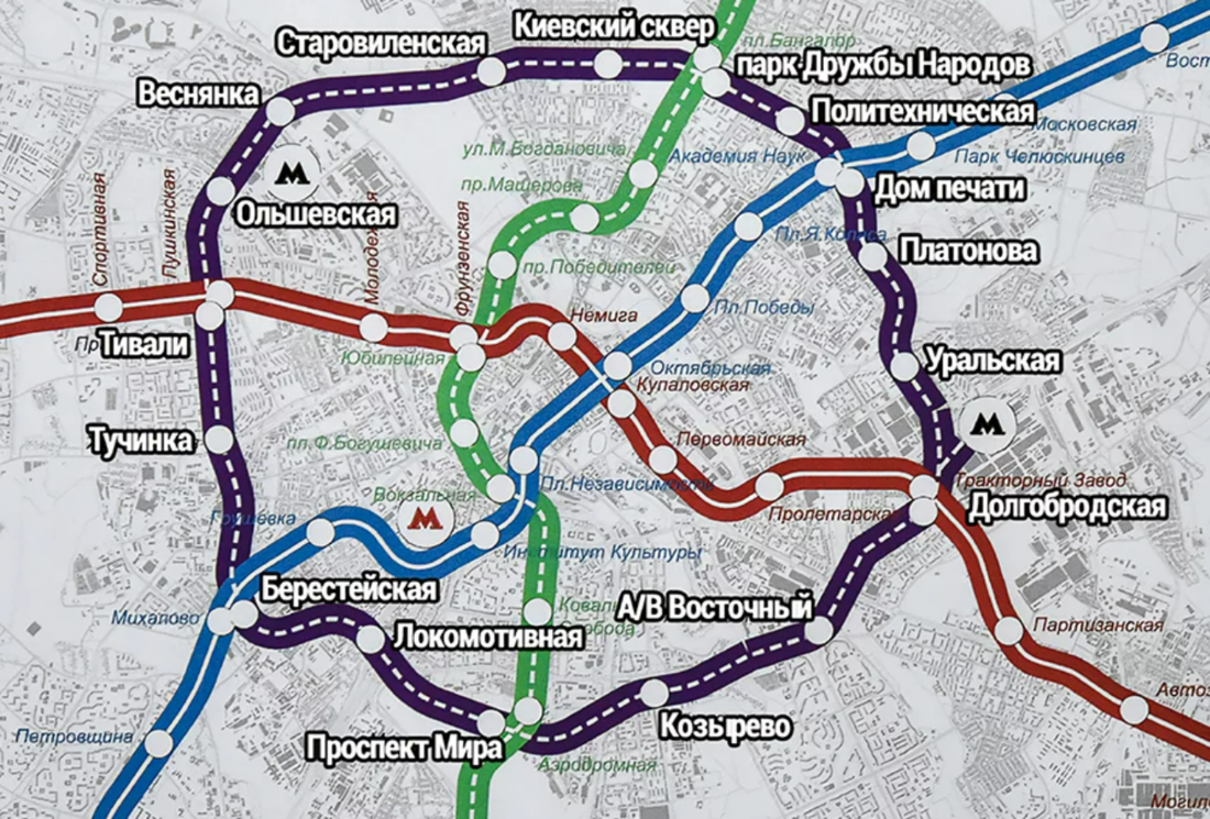 — Третий участок планируем от улицы Харьковской до жилого комплекса «Минск-Мир». Предполагается возведение трех станций. Четвертому участку кольцевой предстоит замкнуть кольцо, соединив пересадку с «Аэродромной» на станцию Автозаводской линии. Проектирование третьего и четвертого участков кольцевой находится на начальной стадии, потому трасса метро здесь может уточняться.