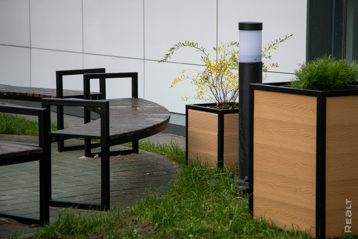 На этом обзор мест общего пользования не заканчивается. Дома, стоящие на стилобатах, состоят из двух секций, в каждой из них сделан отдельный лифт. А между секциями — закрытые дворики без машин, со скамейками, озеленением, детскими площадками и рекреационными зонами под навесом. Получаются пространства, где всем найдется место: а еще сюда можно будет спокойно отпустить ребенка, ведь приглядеть за ним удастся прямо из окна.