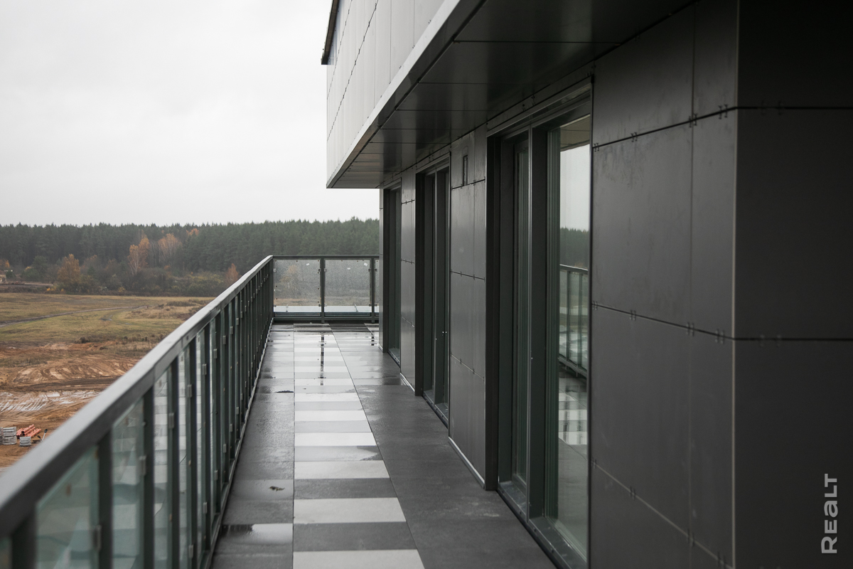 «Шахматное» расположение окон, террасы и панорамные балконы придают комплексу то ли приморское, то ли скандинавское настроение — стиль и особая атмосфера здесь точно есть.