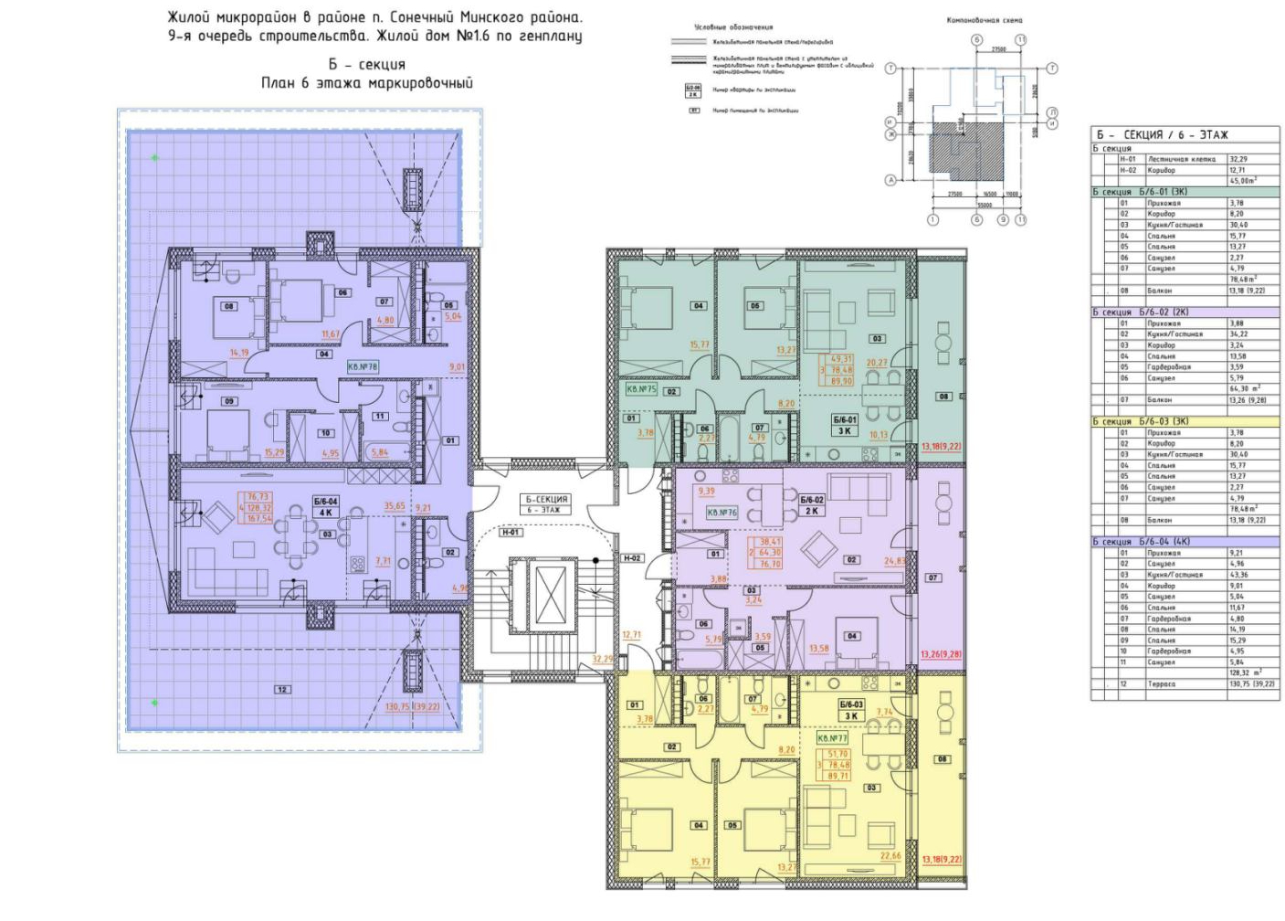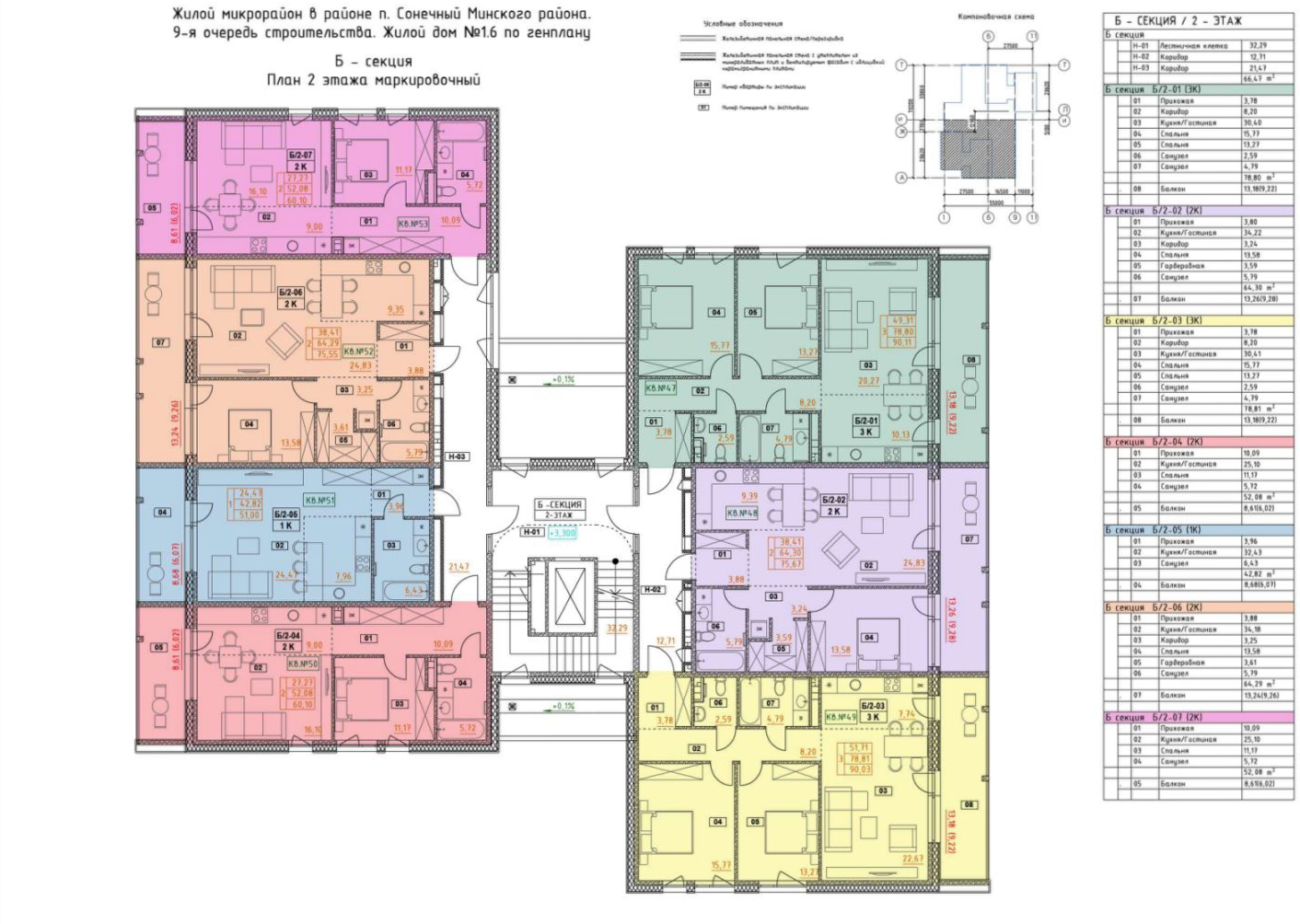 Все дома 6-этажные, в каждом по 2 секции, объединенные стилобатами. Строят жилье из сборного железобетона, используя одну из самых современных конструктивных схем.