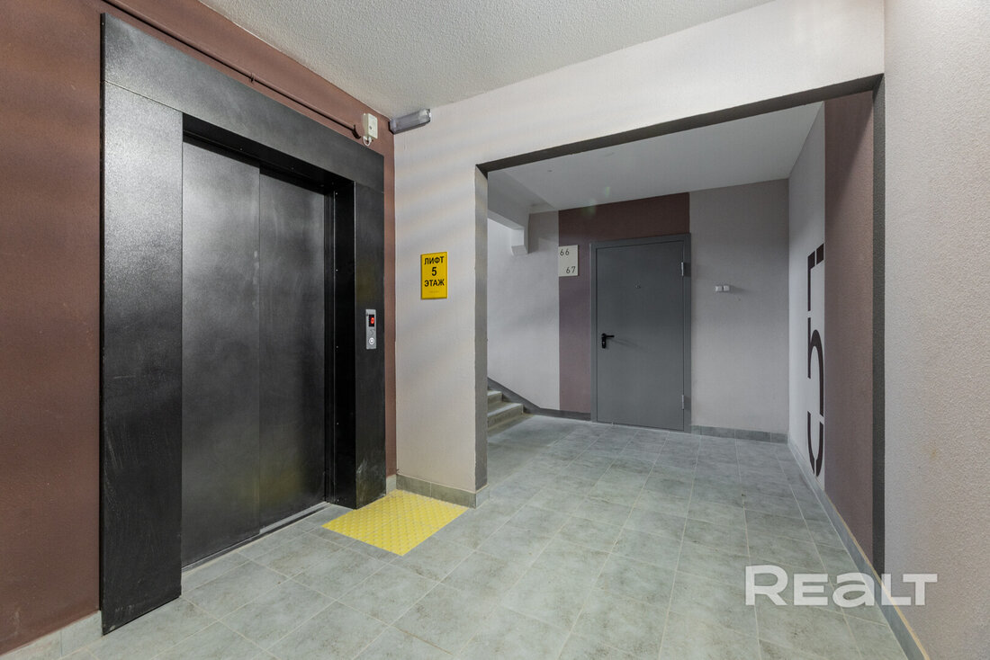 Общая площадь этой двухкомнатной квартиры составляет 64 квадратных метра (жилая — 36 квадратных метров, кухня — 12 квадратных метров). Жилье находится на пятом этаже. Вид из окон — на парковку и зеленую зону.