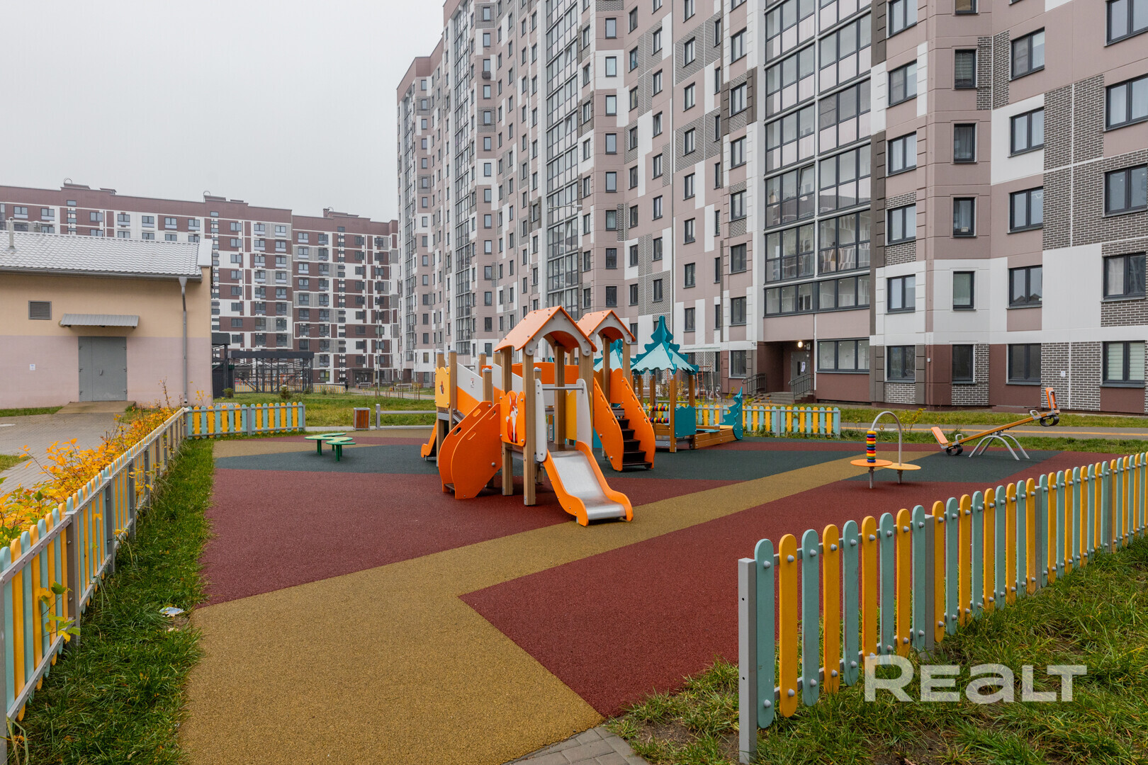 Рядом с домом оборудована детская площадка. А в будущем неподалеку появится торговый центр и школа на 1200 мест с бассейном. Сейчас в новый микрорайон рядом с кольцевой уже ходит общественный транспорт.
