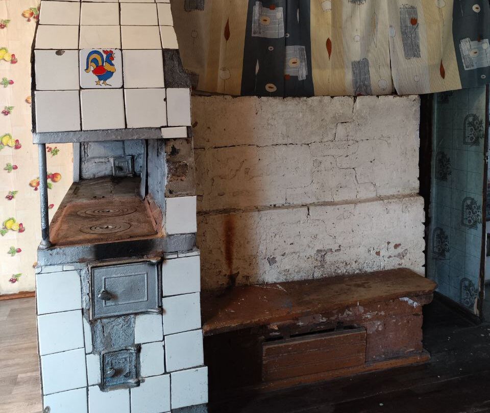 Дом просторный — почти 70 квадратов. Планировка такая: веранда с кладовкой, прихожая, кухня с печью-плитой, зал и две спальни.