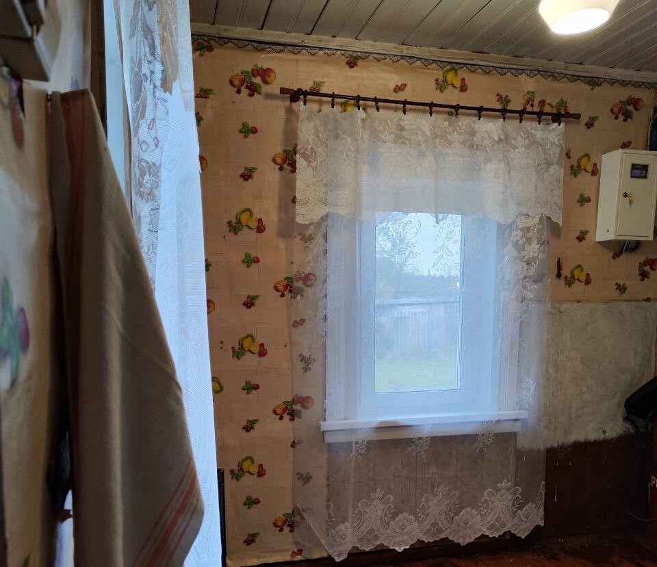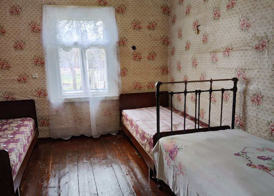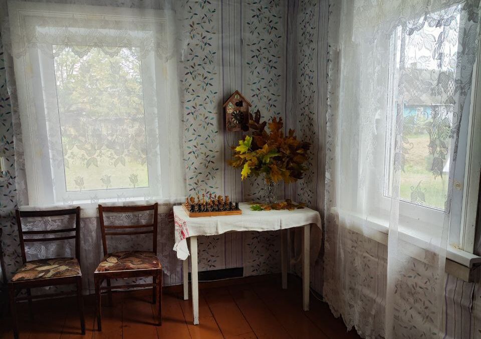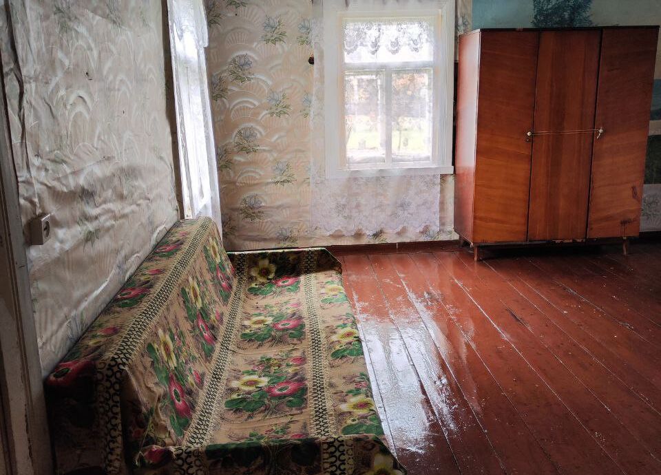 О состоянии дома можно судить лишь по фото и по описанию в объявлении — сруб крепкий, крыша металлическая, окна современные, ремонт не требуется. Для 80-летней хаты очень даже неплохо. Стоит отметить, что внутри тоже все выглядит прилично — деревянные полы покрашены, стены оклеены обоями.