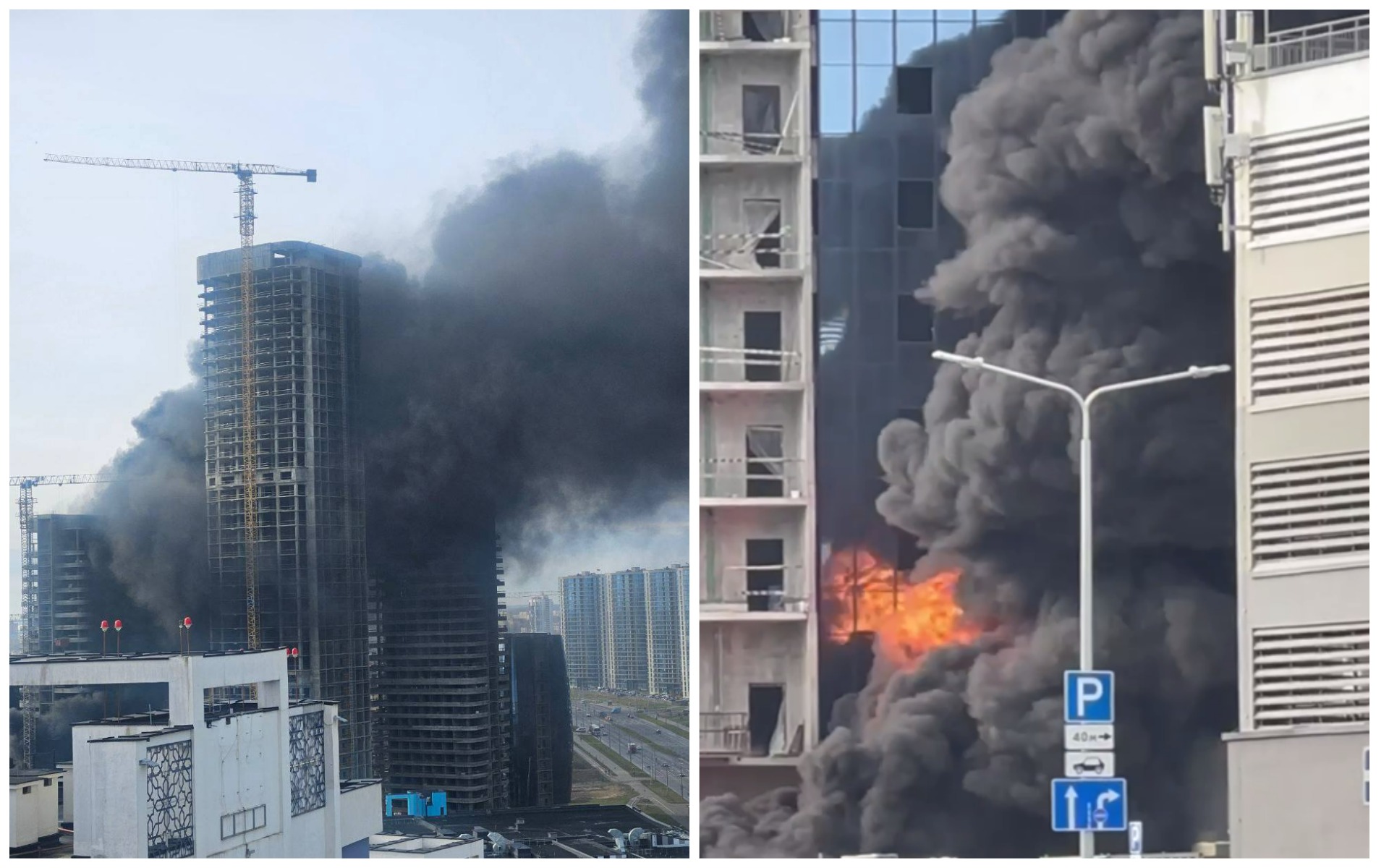 В Минск-Мире горит строящийся Международный финансовый центр. Возгорание, сопровождающееся густым черным дымом, заметил «Кокобай». Подразделения МЧС уже работают на месте. Причины пожара выясняются.