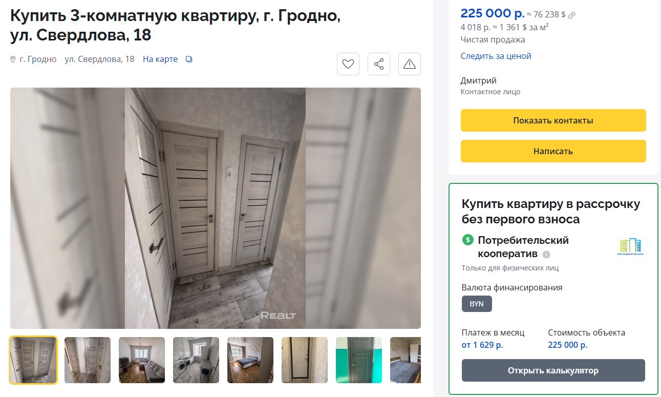 Откройте подходящие вам объявления. Во многих из них (в Минске, Бресте, Гомеле, Гродно, Витебске и Витебской области) вы найдете окошко для расчетов платежей для покупки жилья через организацию «Жилищный баланс».