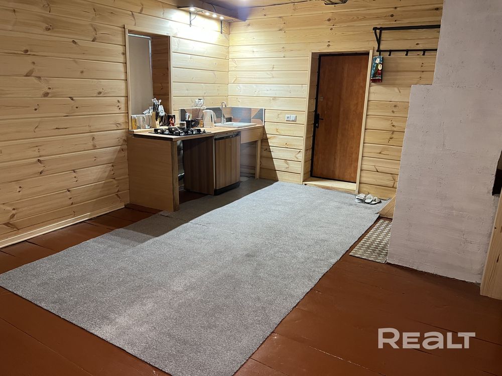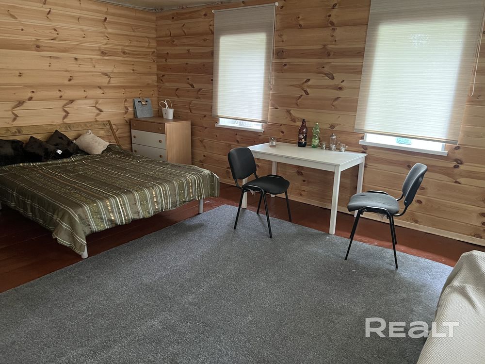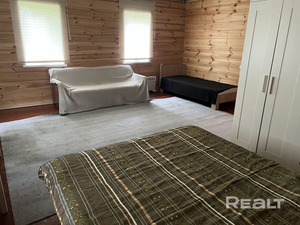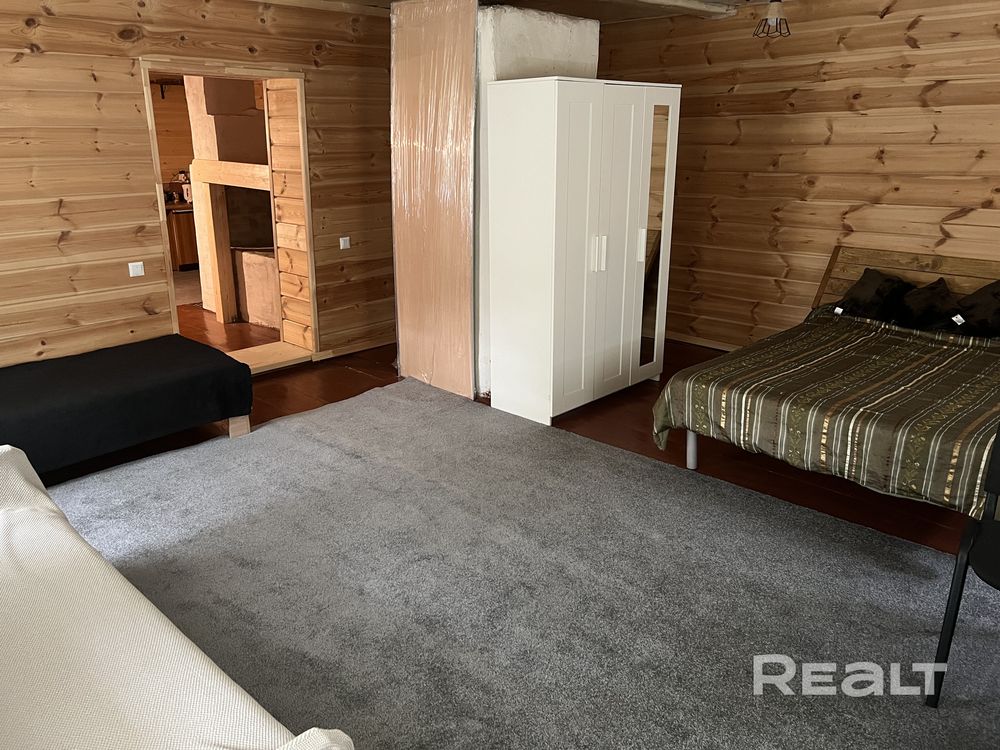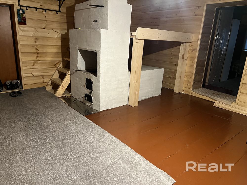 Жилая часть поделена на две большие комнаты. В первой находятся кухня-столовая с печкой-лежанкой, во втором — спальня. Плюс веранда с кладовкой и хозпомещение.