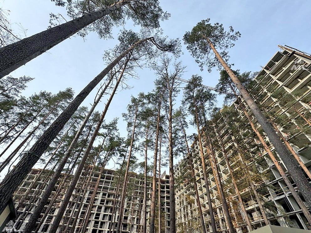 ЖК «Уютный» строят рядом с сосновым лесом за станцией метро «Восток» и Национальной библиотекой.