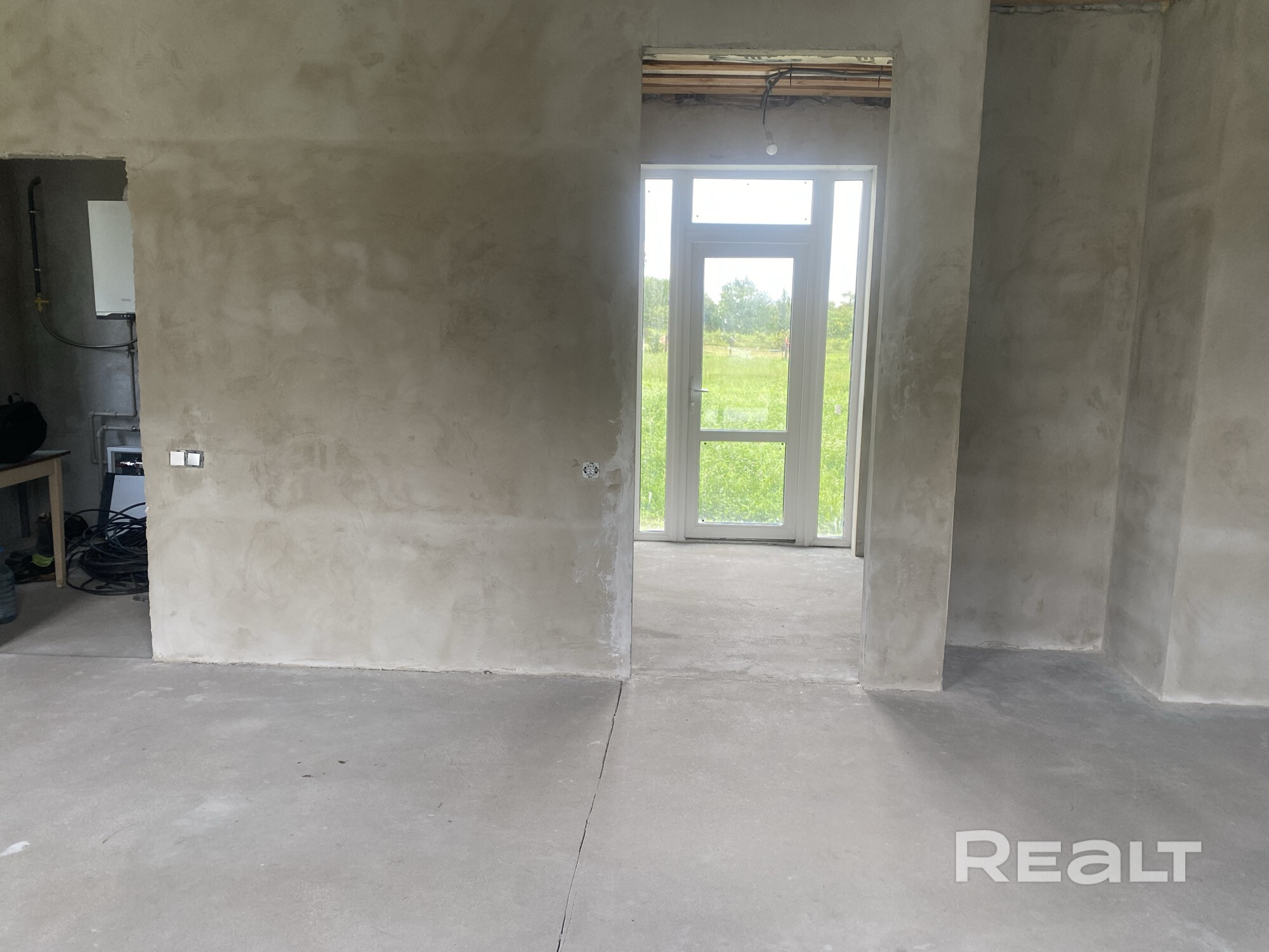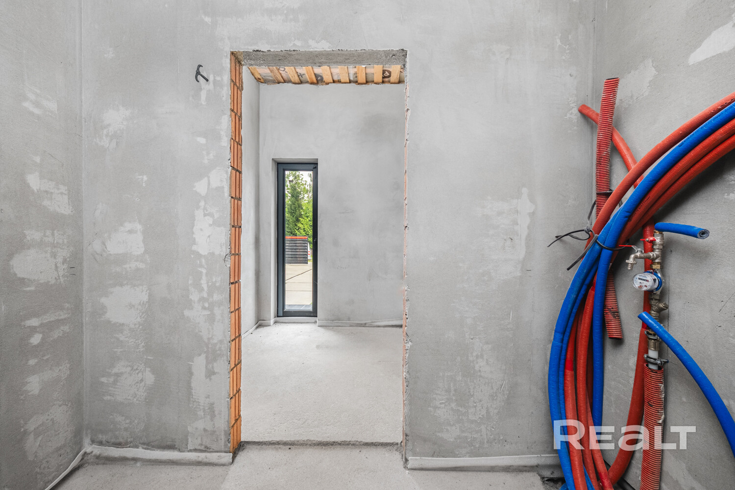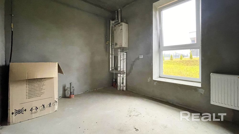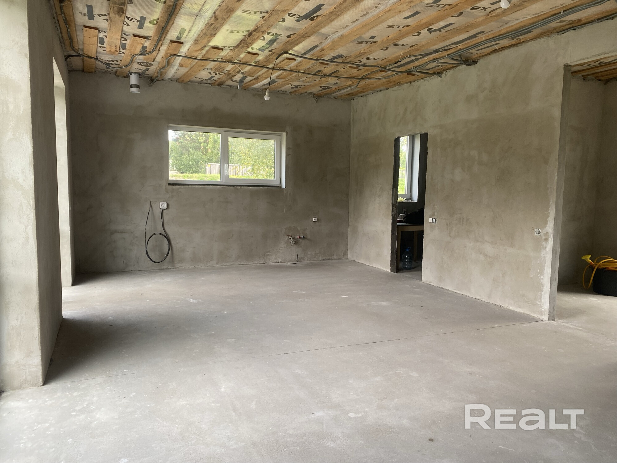 Общая площадь — 185 квадратов. Сделана бетонная стяжка, оштукатурены стены, установлены радиаторы отопления, разведена вся электрика, сантехника. Все коммуникации уже подведены.