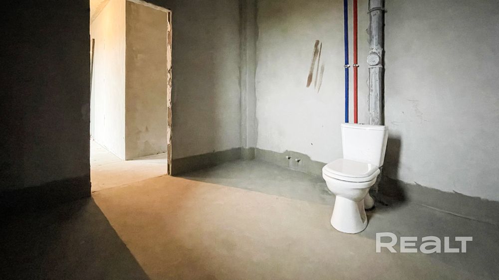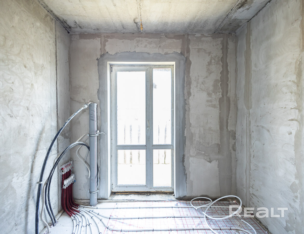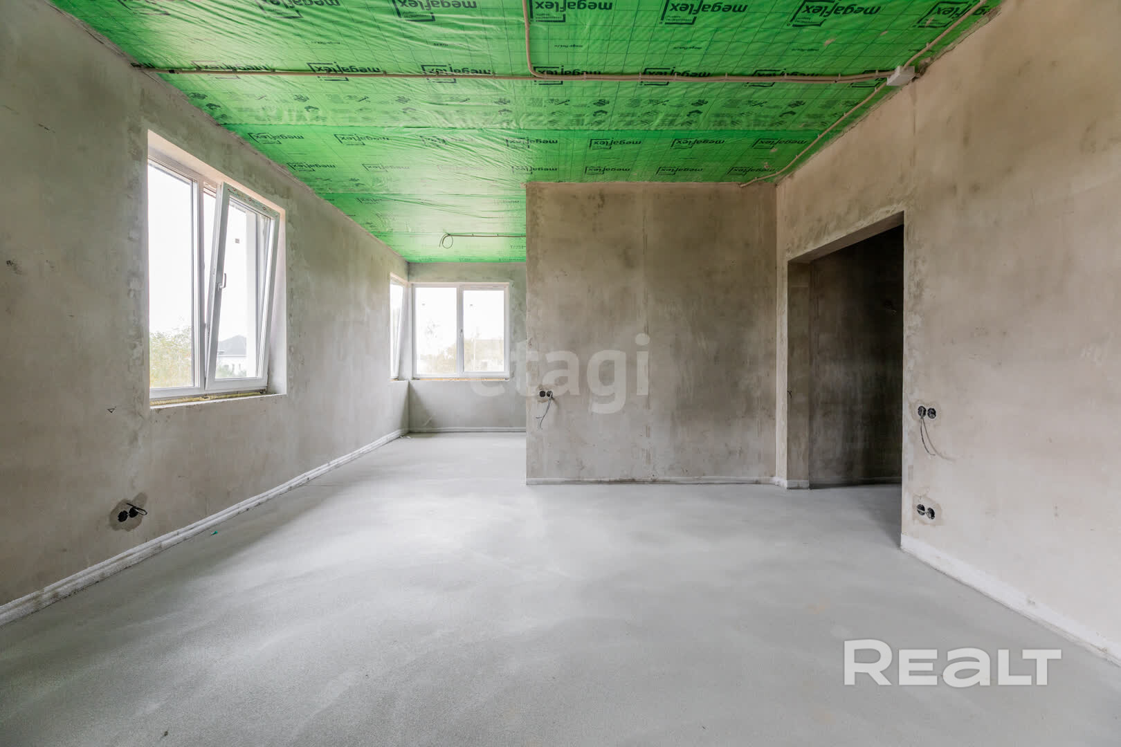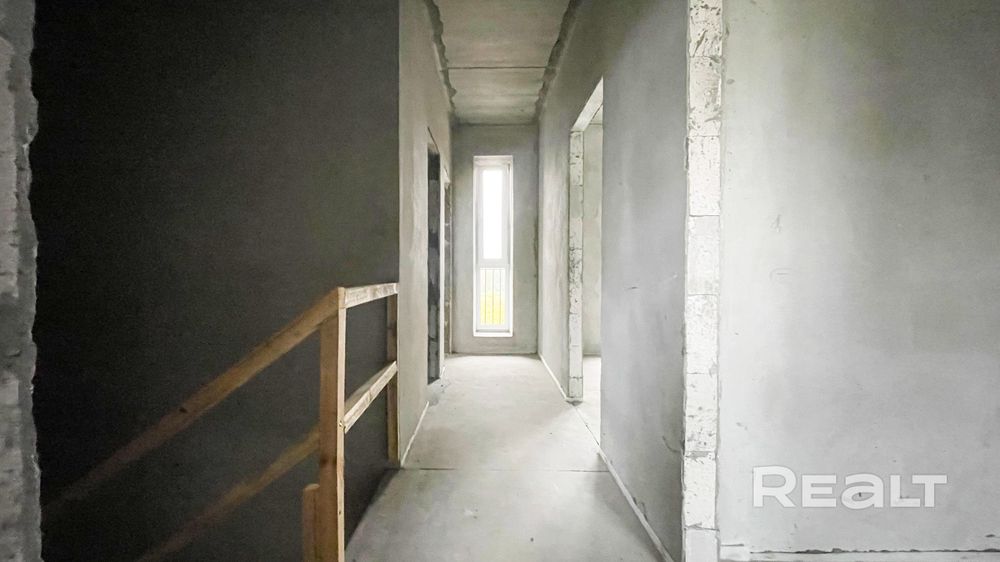 Общая площадь — 185 квадратов. Сделана бетонная стяжка, оштукатурены стены, установлены радиаторы отопления, разведена вся электрика, сантехника. Все коммуникации уже подведены.