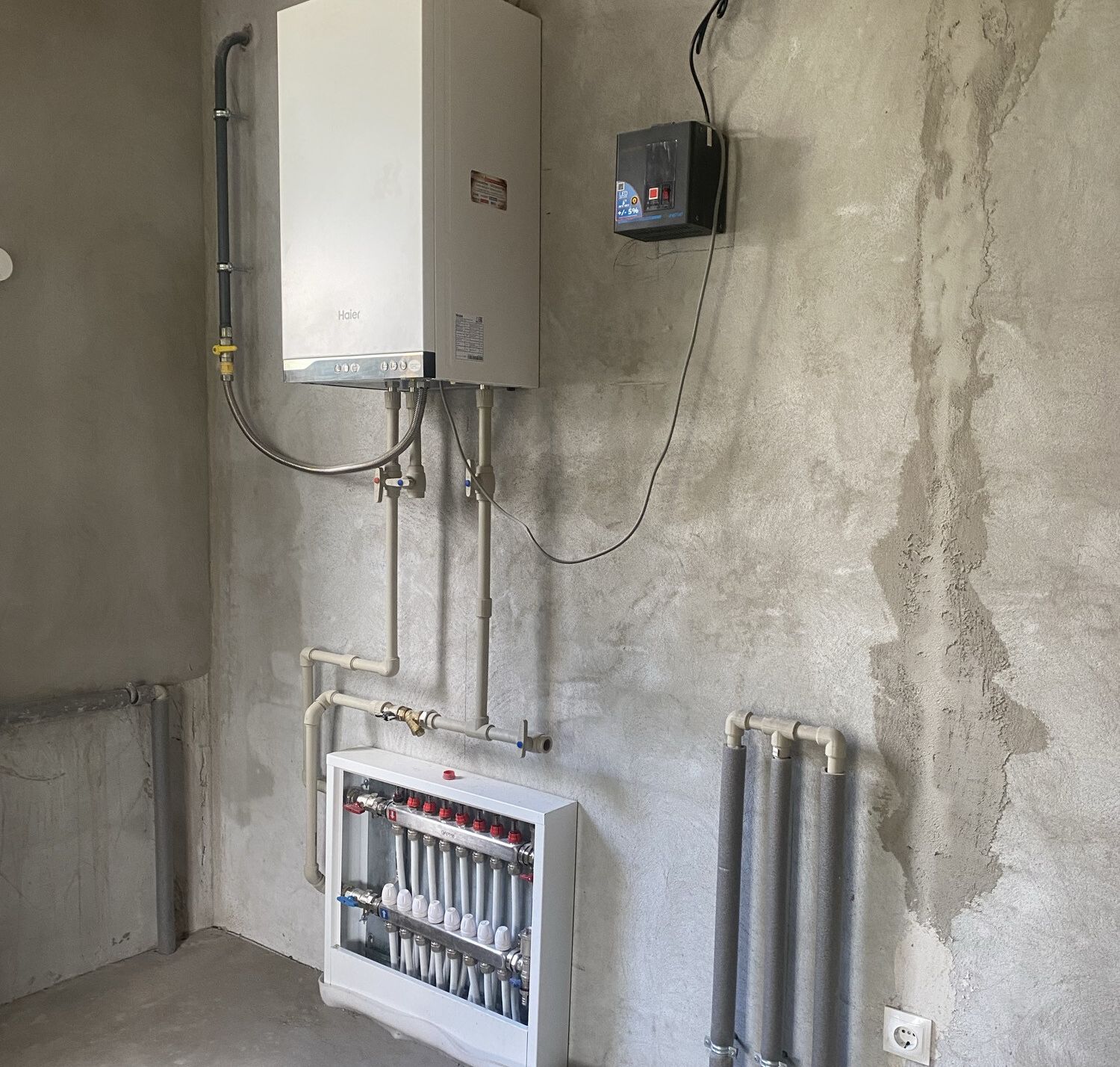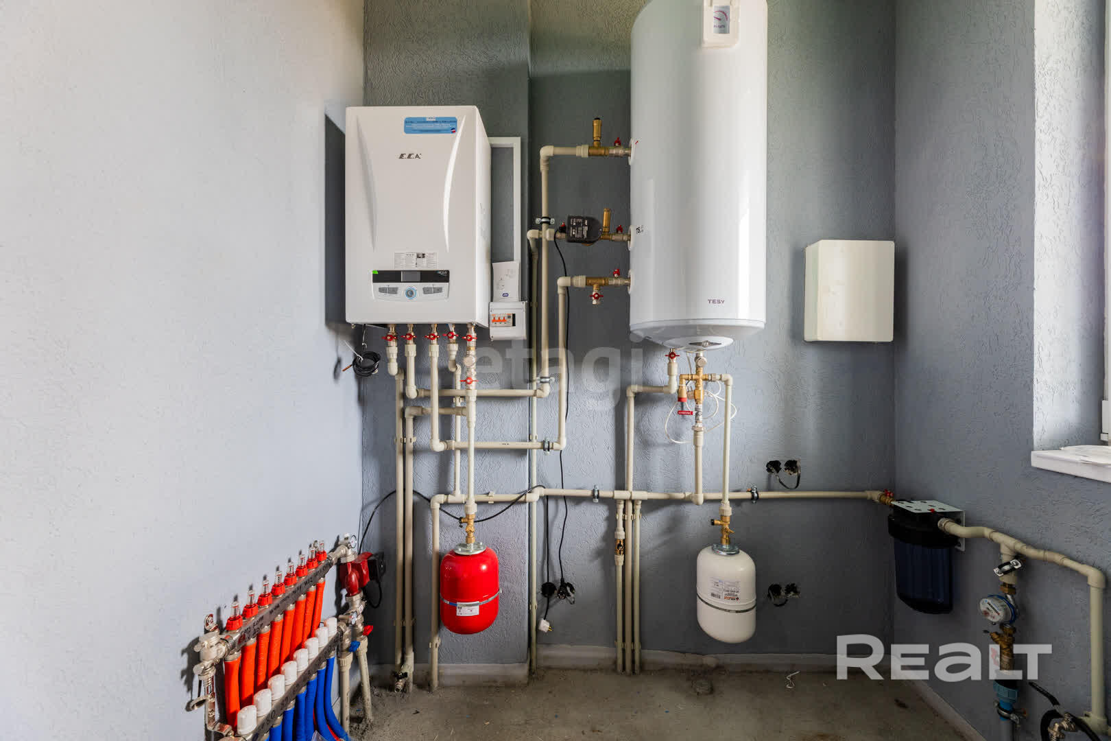 Отопление газовое с теплыми полами, вода из скважины, канализация местная (станция биологической очистки). Установлены розетки и выключатели. Дом введен в эксплуатацию.