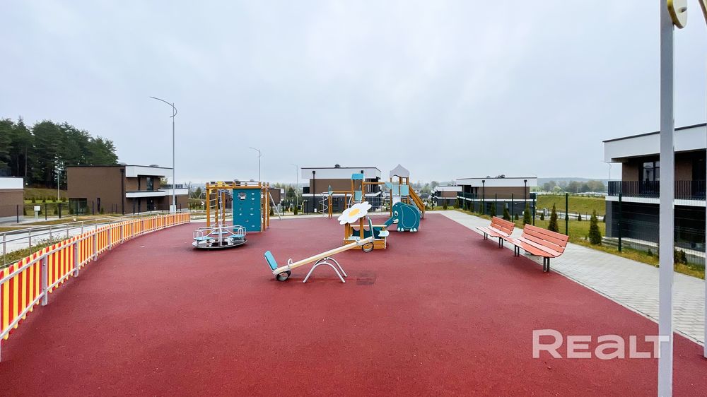 Таунхаус располагается на улице Яночкины Горы, в новом квартале с огороженной территорией, зелеными лужайками и плиточными дорожками. В агрогородке есть все необходимое: магазины, школа, детский сад и кафе.