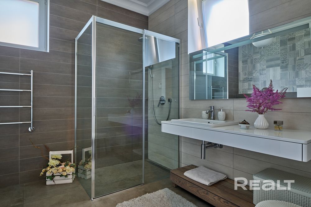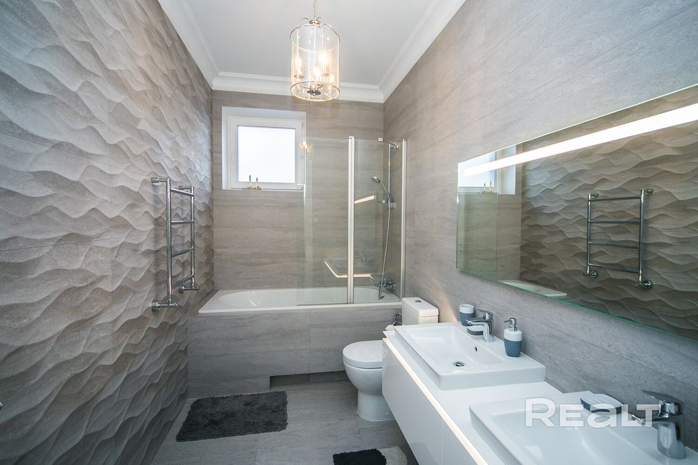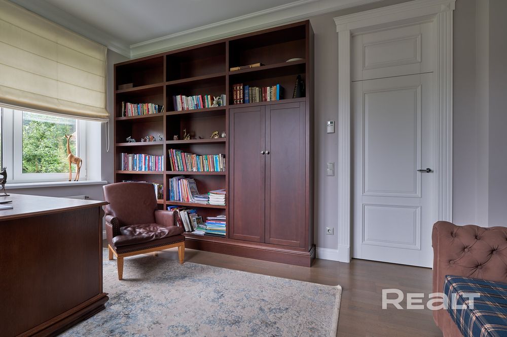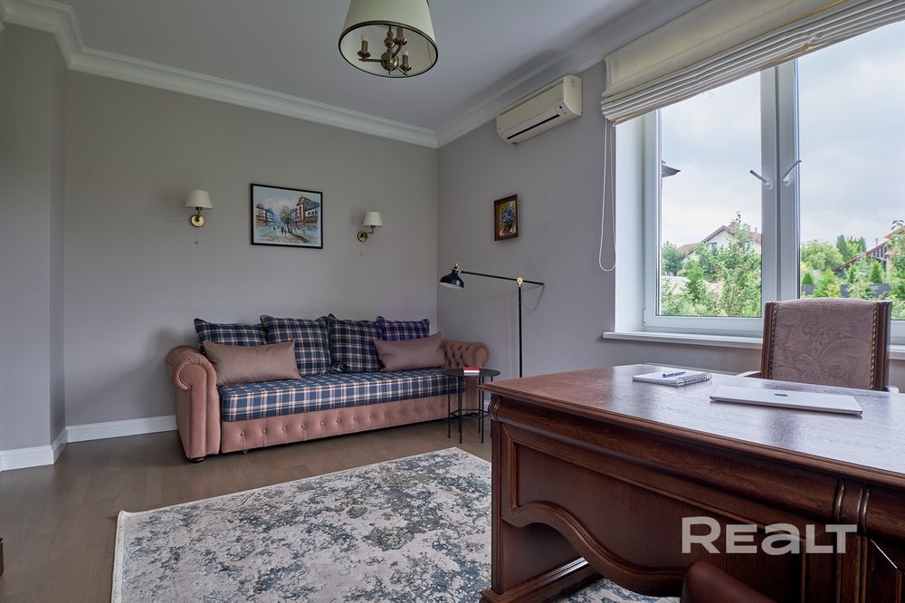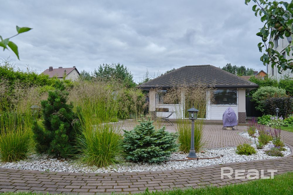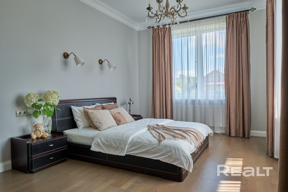 Расположен он в глубине поселка, в респектабельной застройке — вокруг зелень, тишина и приятное окружение. До Минска — всего 15 минут езды, удобный выезд на городские трассы. Это отличный вариант для тех, кто ищет качественный дом под Минском с готовым интерьером.