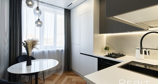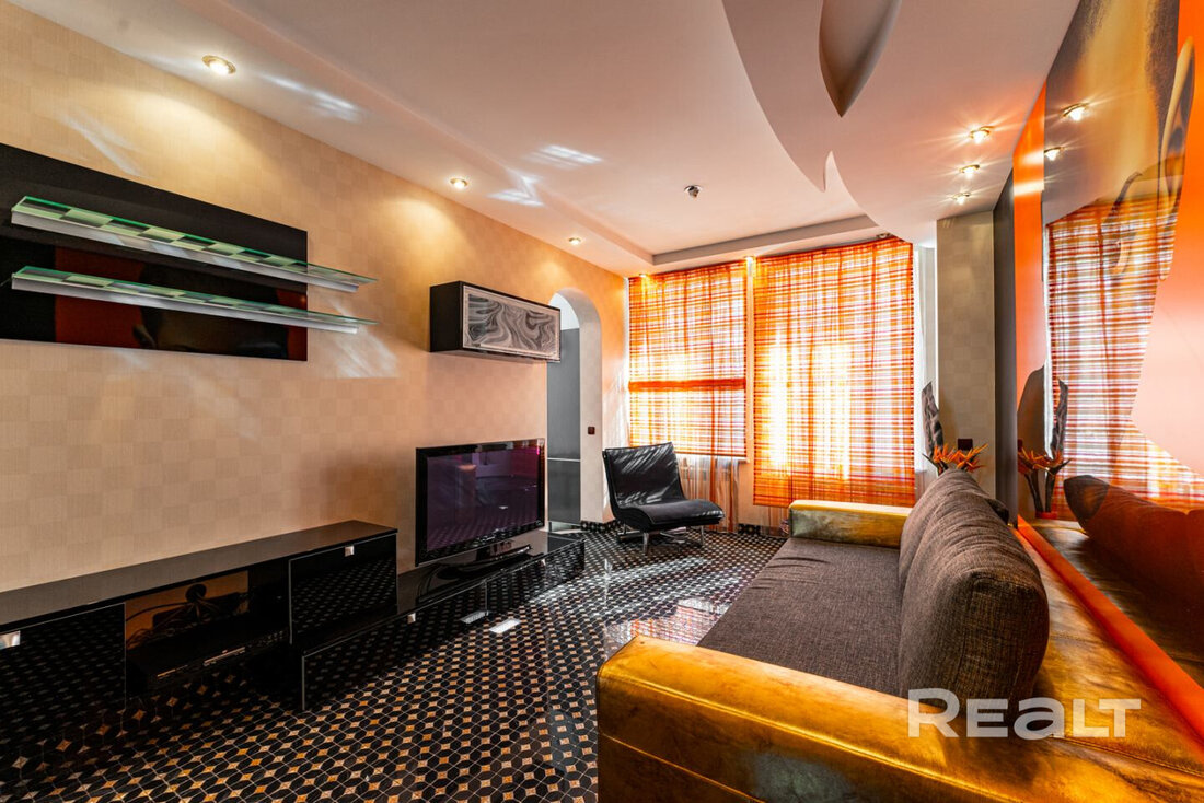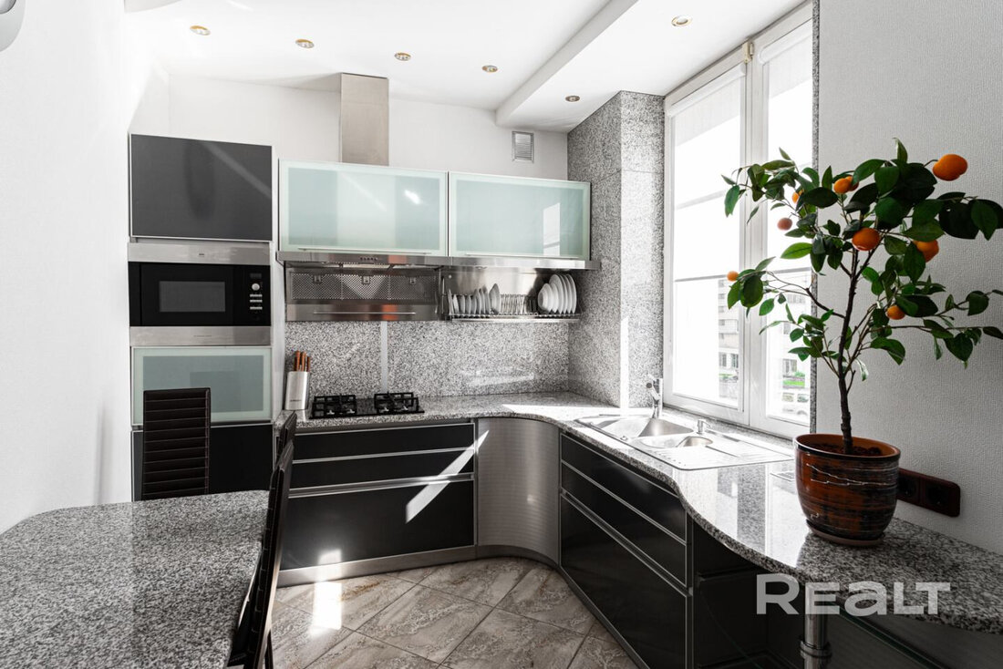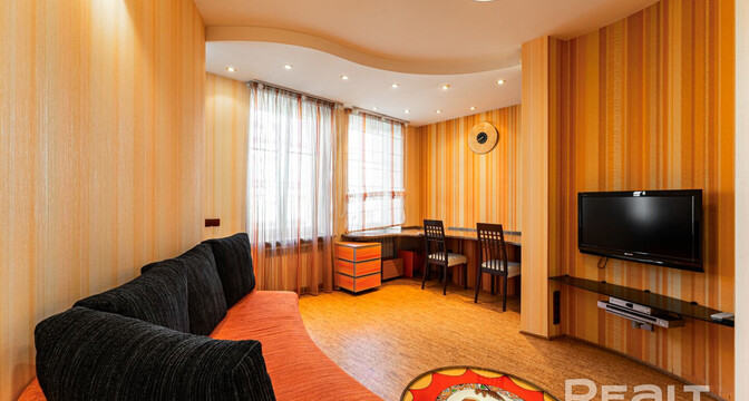 Например, в сталинке 1958 года постройки напротив продается трехкомнатная квартира. Дом является исторической ценностью и охраняется государством. Общая площадь трешки — 72,1 квадрата, из них жилая — 46,5 метров квадратных. В квартире произведен полный демонтаж, включая межкомнатные перегородки, а также выполнен комплексный капитальный ремонт. Стильный интерьер был разработан по проекту дизайнера, входящего в топ-10 дизайнеров Беларуси. В квартире окна выходят на две стороны, там установлены тройные стеклопакеты, которые дают возможность полностью уйти от городского шума. Также есть кондиционер. Кроме того, жилье полностью укомплектовано всей необходимой мебелью и бытовой техникой. Хотят за нее 179 тысяч долларов (2 483 доллара — за квадрат).