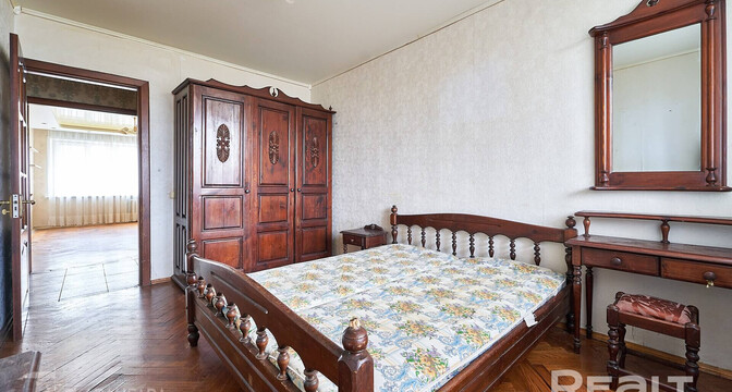 Еще одна трехкомнатная квартира предлагается по адресу Короля, 20. Ее общая площадь — 72,8 квадрата. Все комнаты в жилье просторные и раздельные, при этом окна выходят на две стороны. Есть большая лоджия с видом на двор, кладовая комната и раздельный санузел. В квартире уложен натуральный паркет, а также плитка. Сам дом, в котором она построена, — кирпичный, с хорошей звукоизоляцией. Был сдан в эксплуатацию в 1970 году. В 2022 в нем сделали капитальный ремонт. Трешка располагается на пятом из девяти этажей. Оценивается она в 129 тысяч долларов, то есть 1 772 доллара — за метр квадратный.