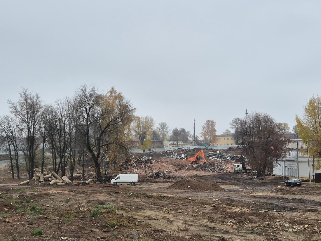 Часть площади, которую занимали постройки бывшей фабрики «Сукно» на улице Клары Цеткин, уже освобождена. Груду строительного мусора вывозят буквально ежечасно.