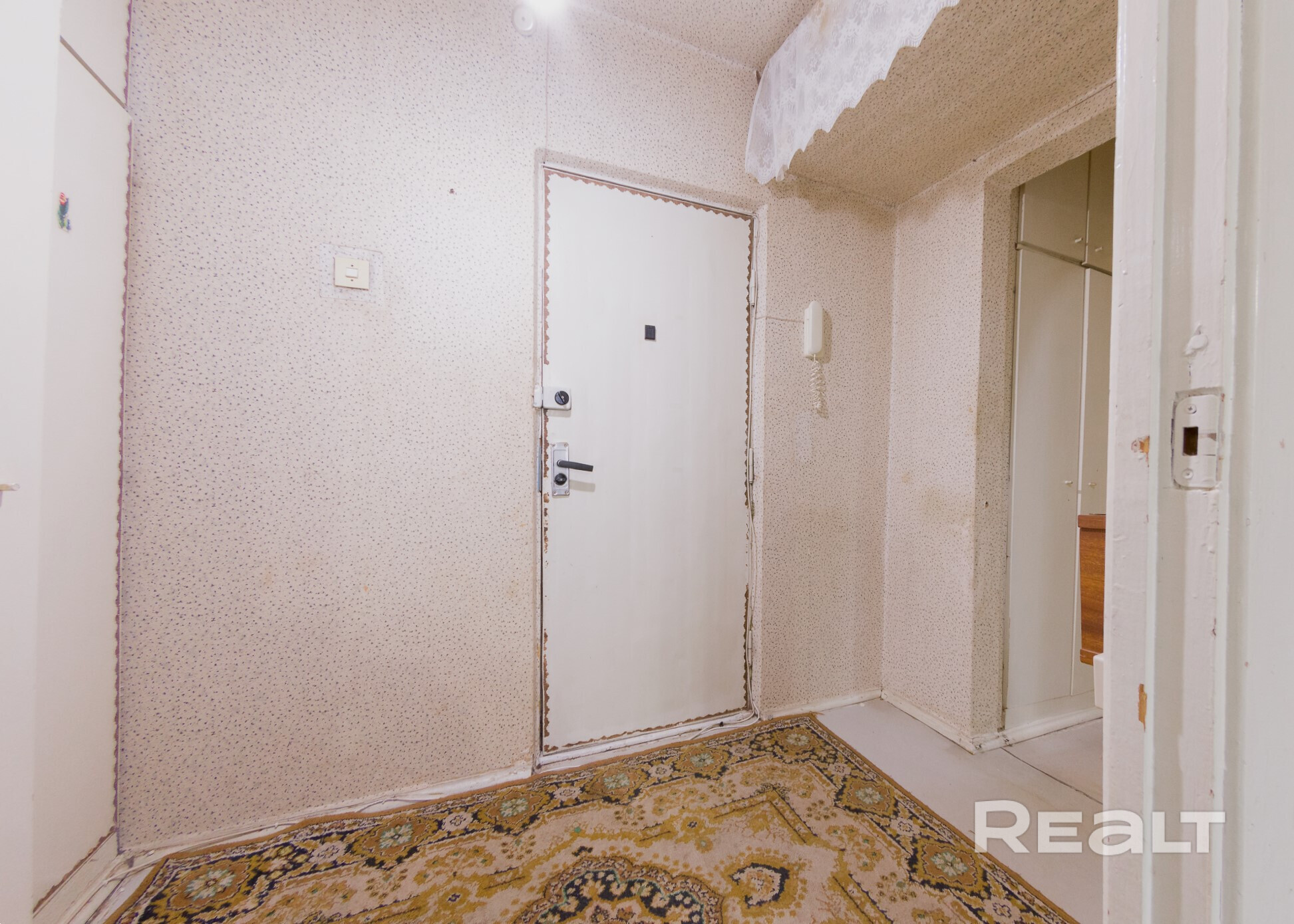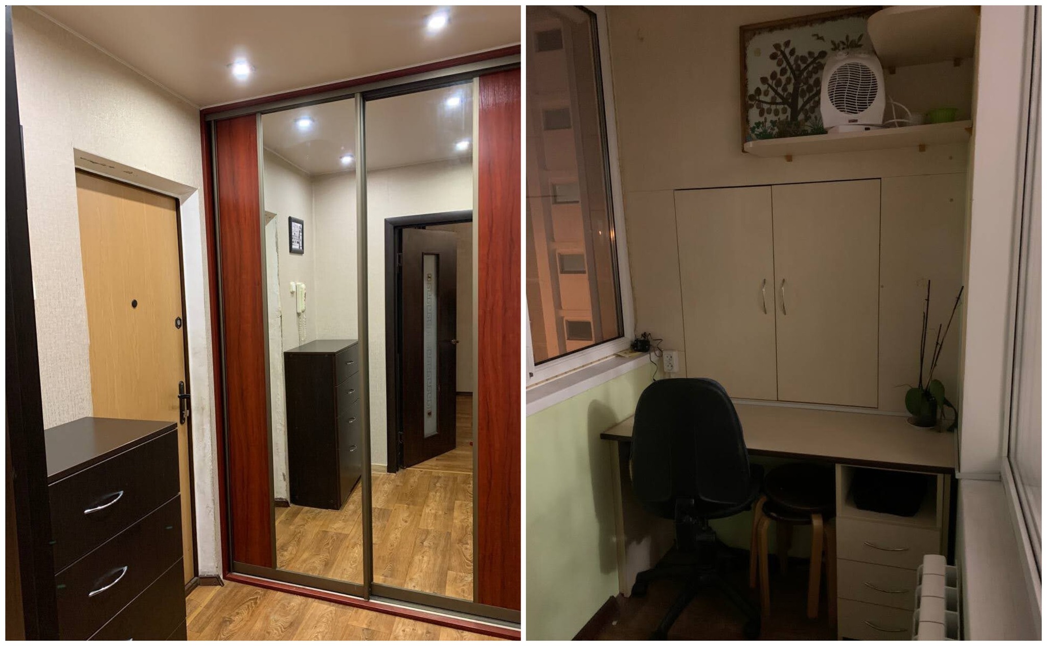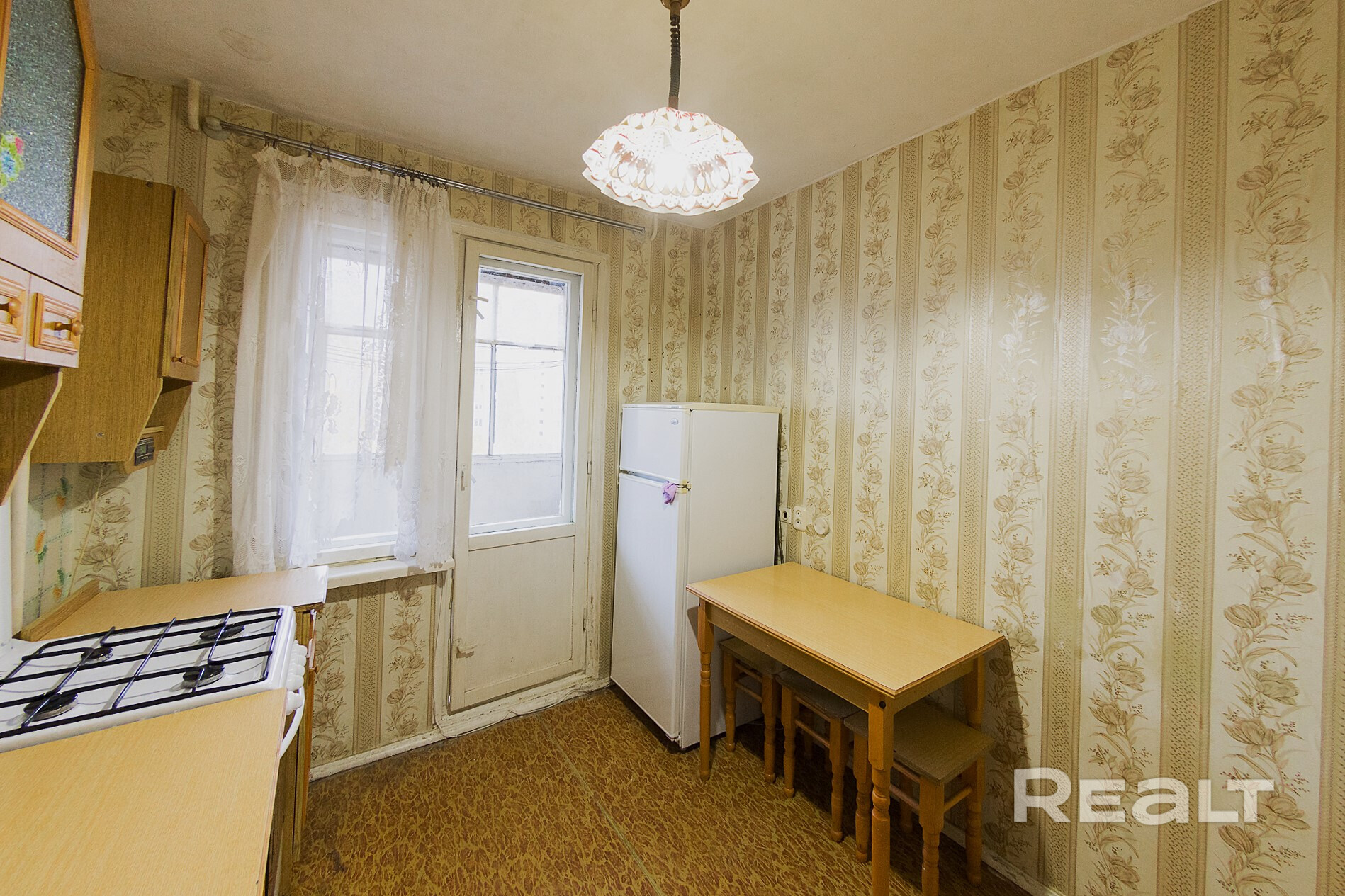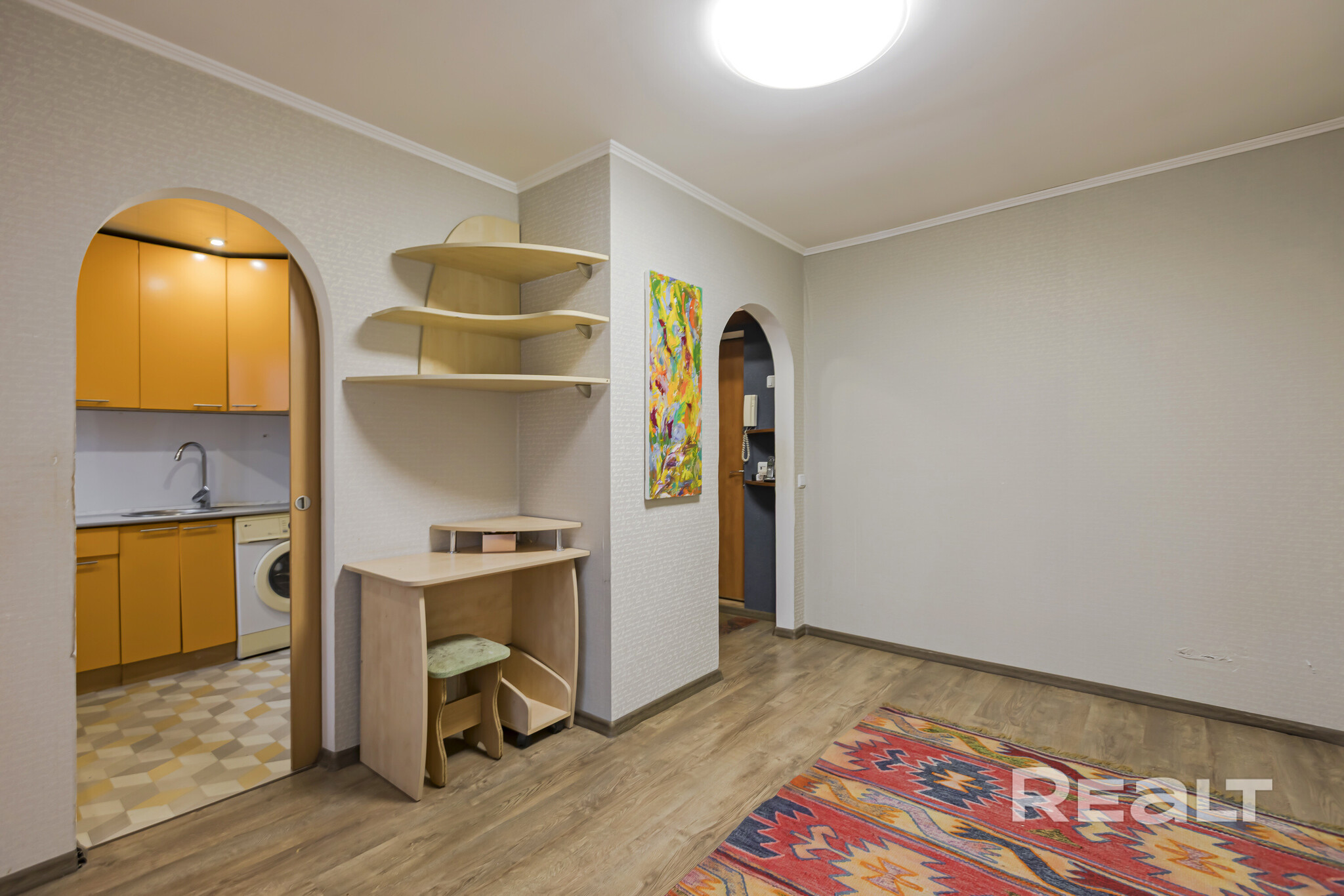 Квартира нуждается в обновлении. На полу лежит ламинат, в окнах стоят стеклопакеты. Жилье продается со всем, что есть на фото. Из комнаты имеется выход на застекленный балкон.