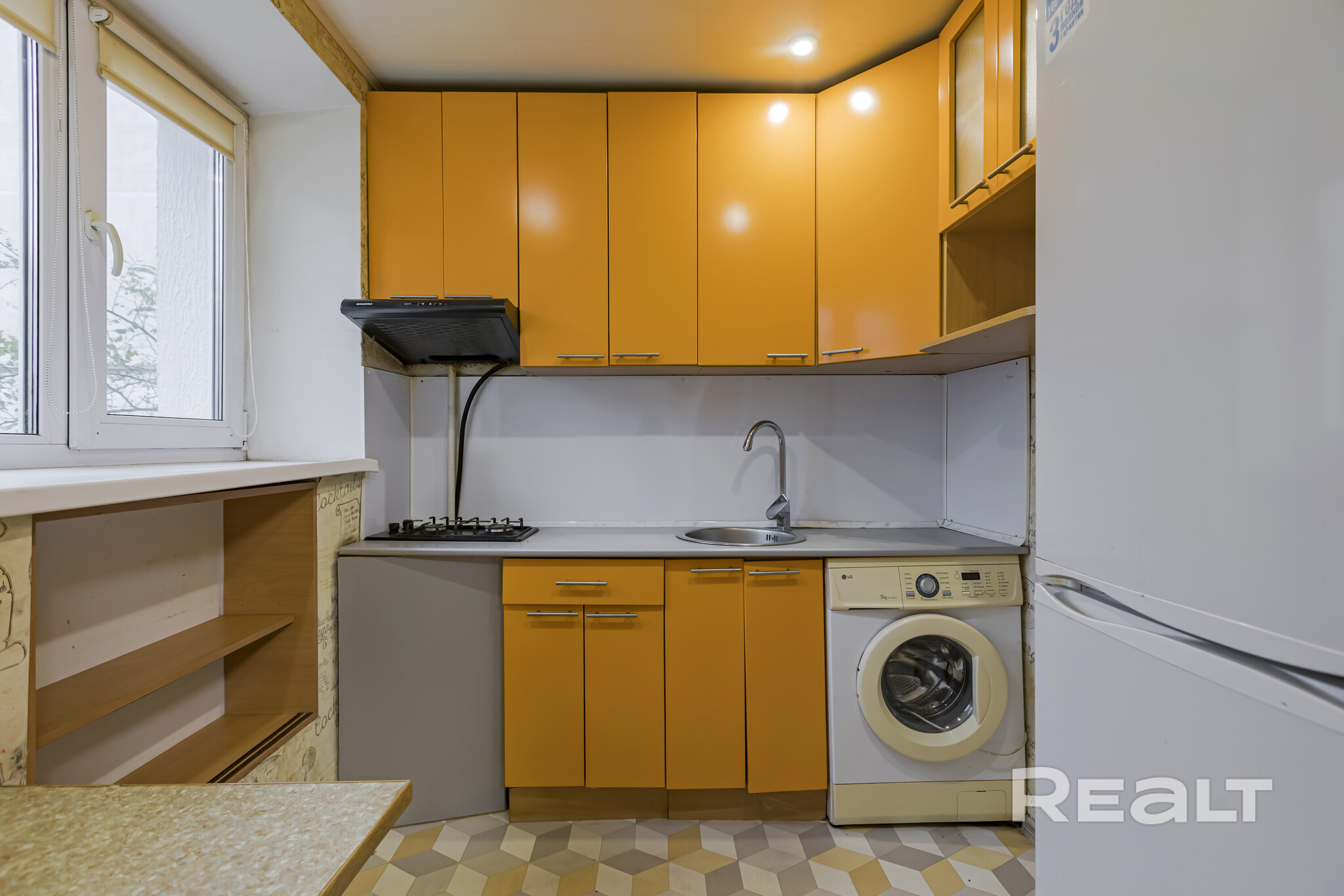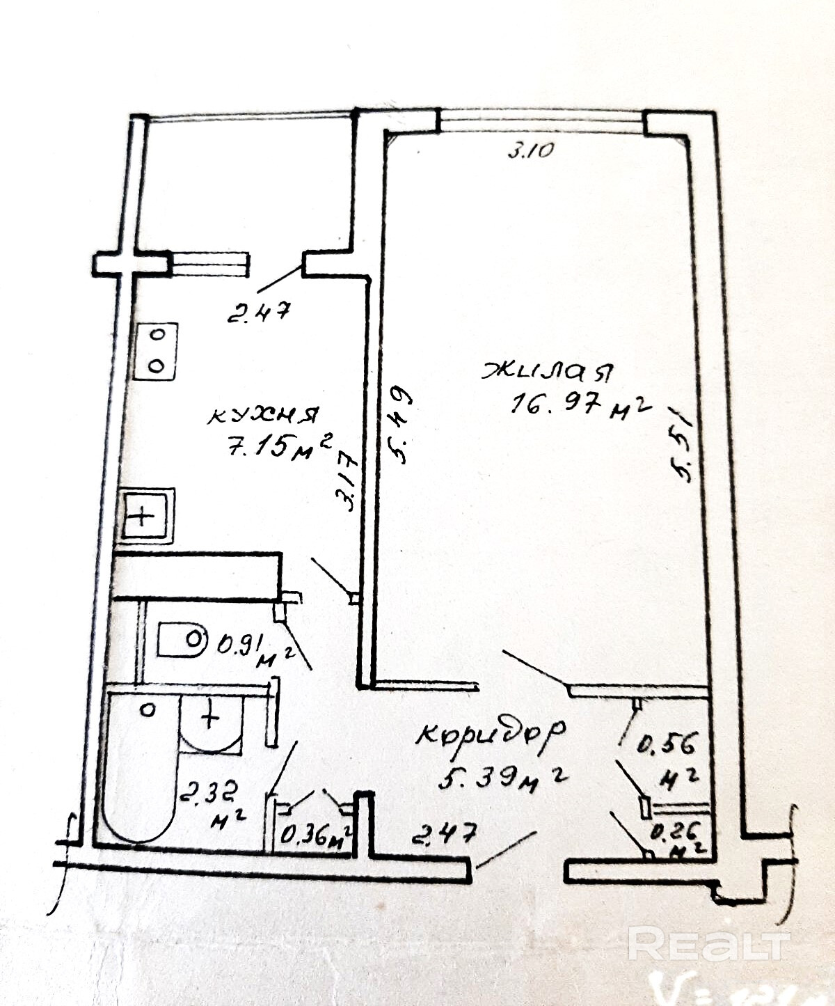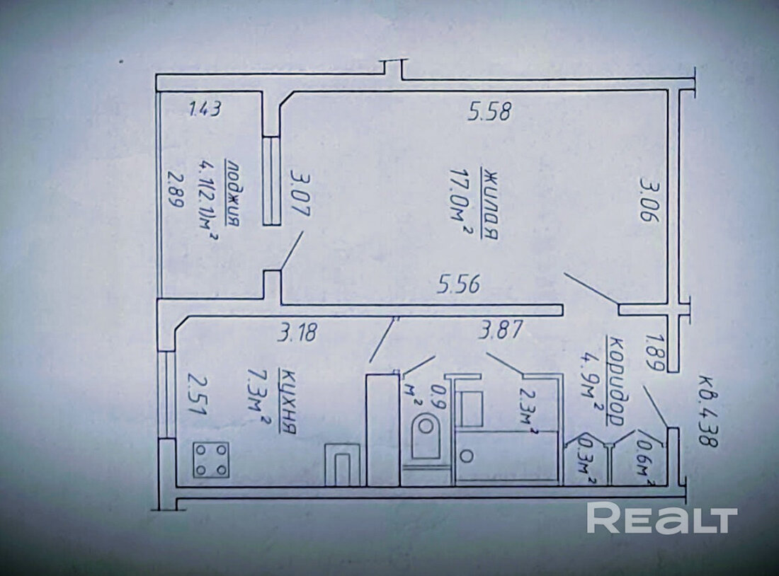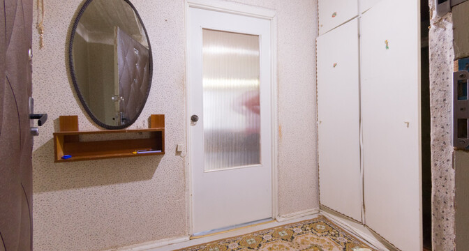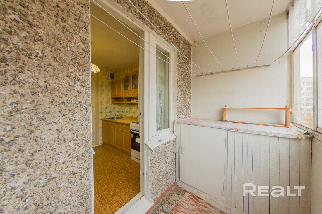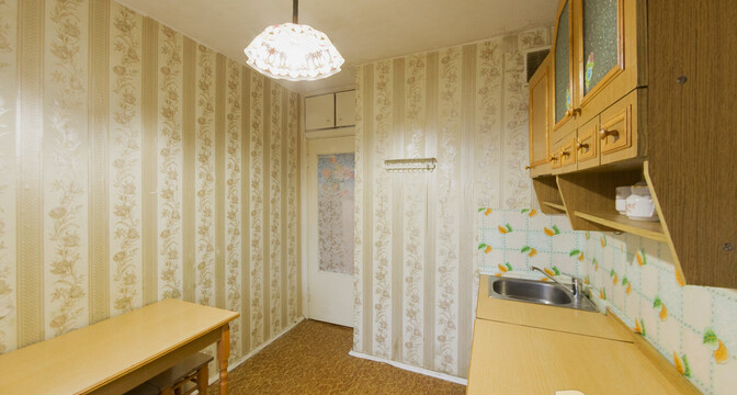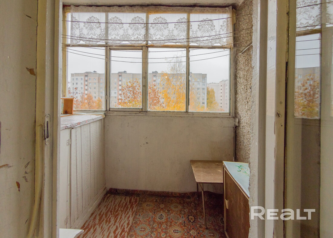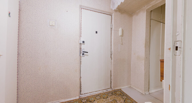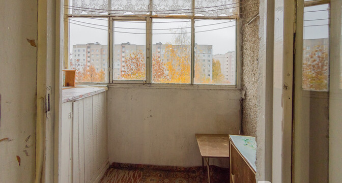 Жилье под ремонт: нужно менять окна, пол и обновлять стены. В коридоре есть ниши под хранения вещей. Из кухни можно выйти на застекленный балкон.