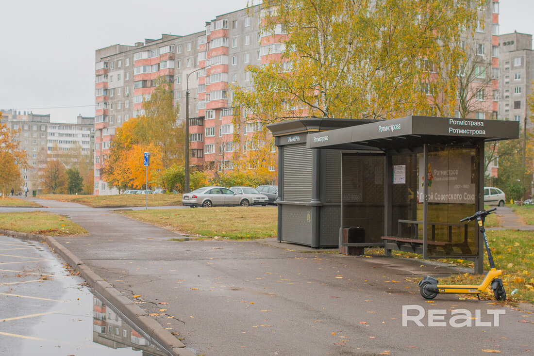 Рядом есть остановки, магазины. На транспорте за 10 минут можно доехать до станции метро «Могилевская».