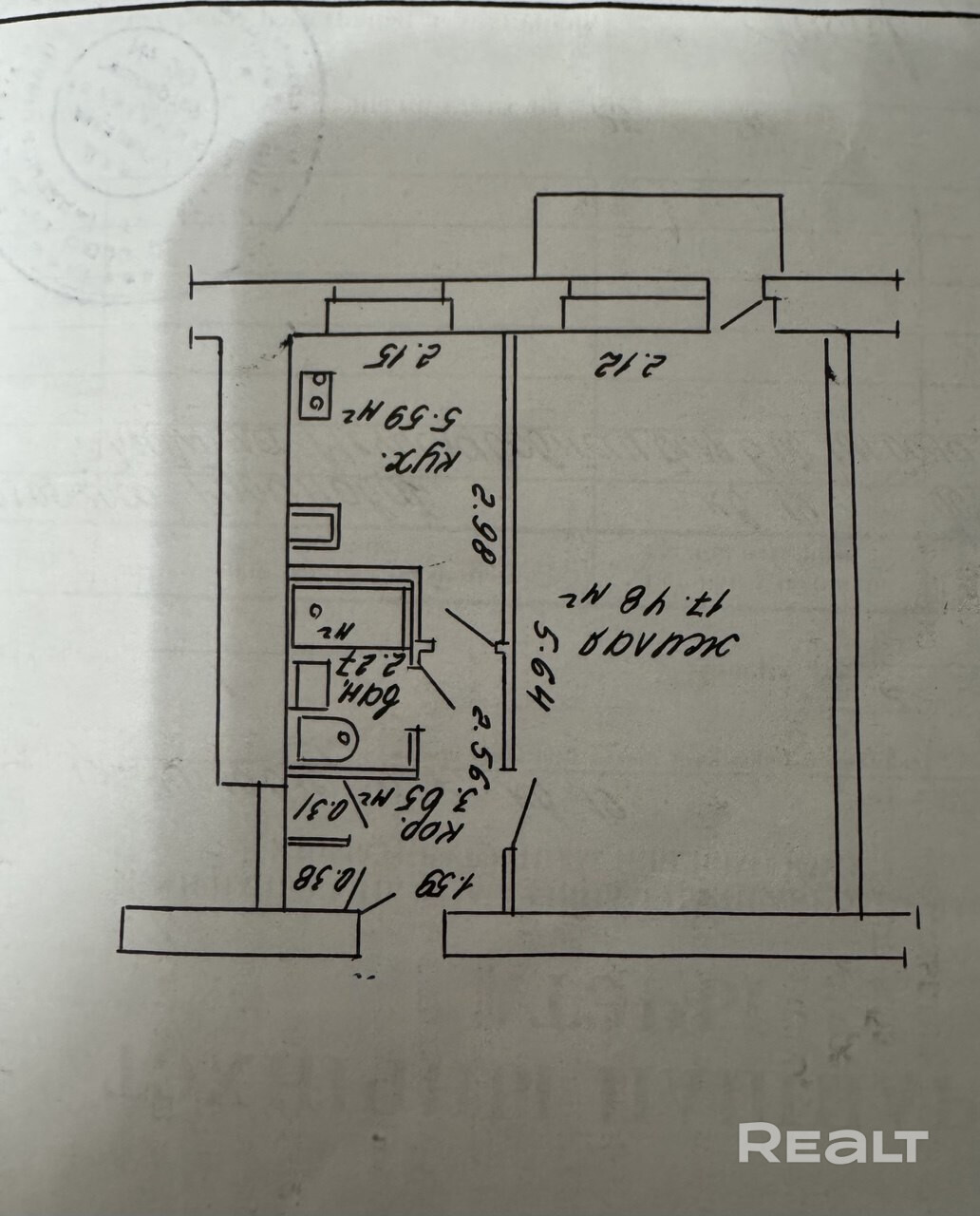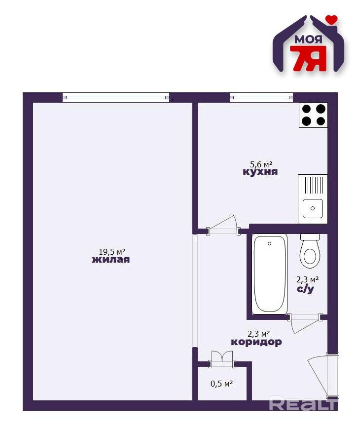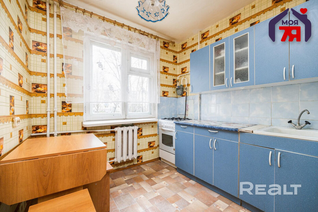 Девятиэтажный дом на Ротмистрова, 32 построили в 1984 году. Однокомнатная квартира продается на пятом уровне. Ее площадь — 35,5 м², кухня — 7,15 метра.