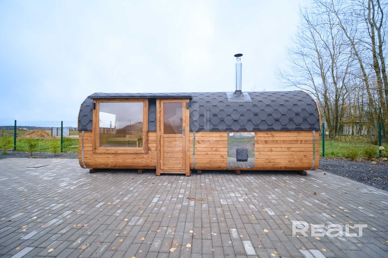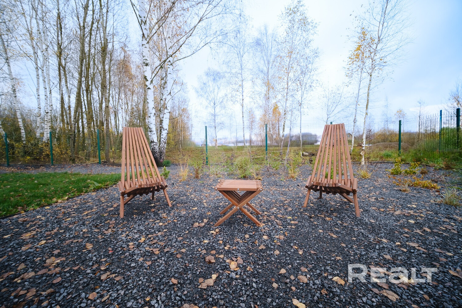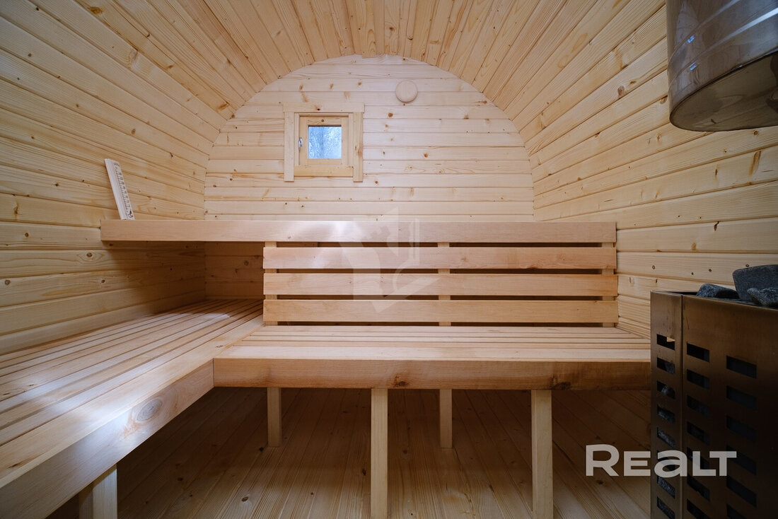 В архитектуру участка гармонично вписана новая баня, а также зона барбекю и хозпостройка. В бане имеется не только парилка, но и комната отдыха с панорамным окном, а также душевая кабина.