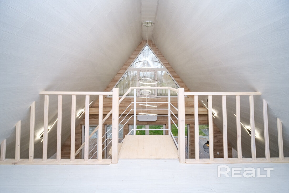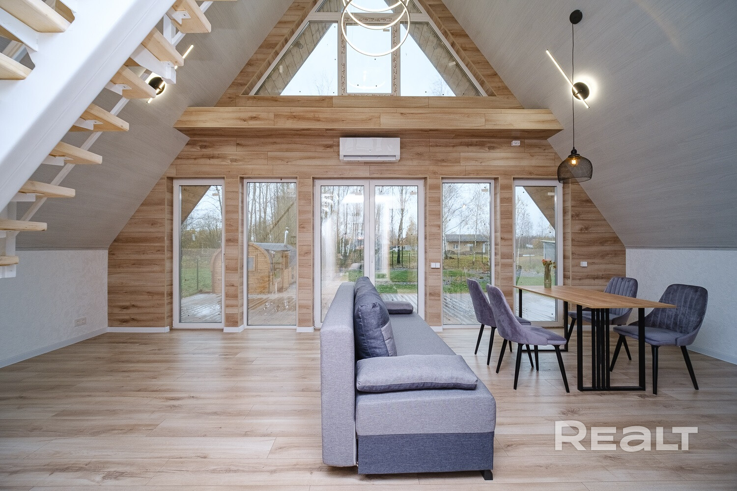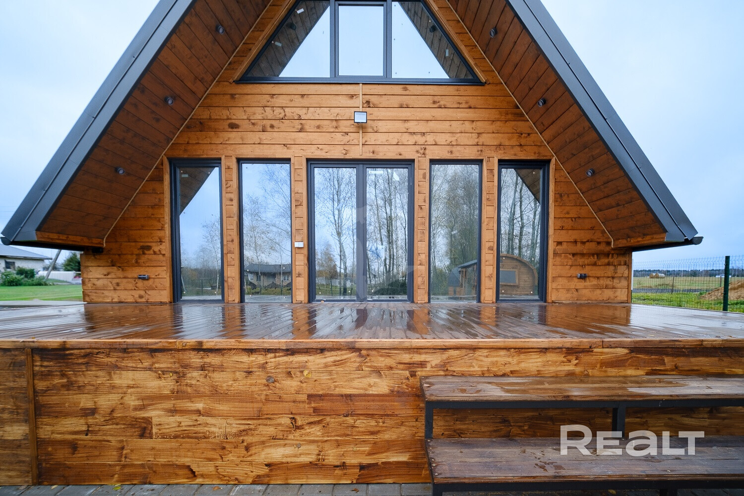 В объявлении отмечается, что выставленная на продажу дача больше и выше стандартных домов типа А-фрейм. Учитывая, что объект полностью готов к проживанию, он подойдет как для личного использования, так и для сдачи в аренду. Ведь спрос на подобные дома достаточно высокий.