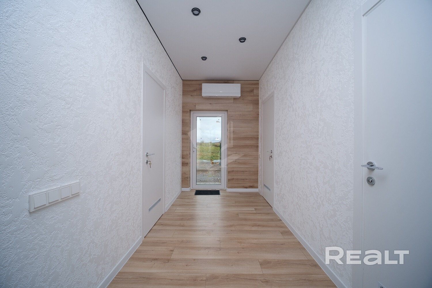 Отапливается дом двумя кондиционерами (также есть теплые полы в санузлах), все остальные необходимые коммуникации — также в наличии. Вода — скважина, нагрев — бойлер.