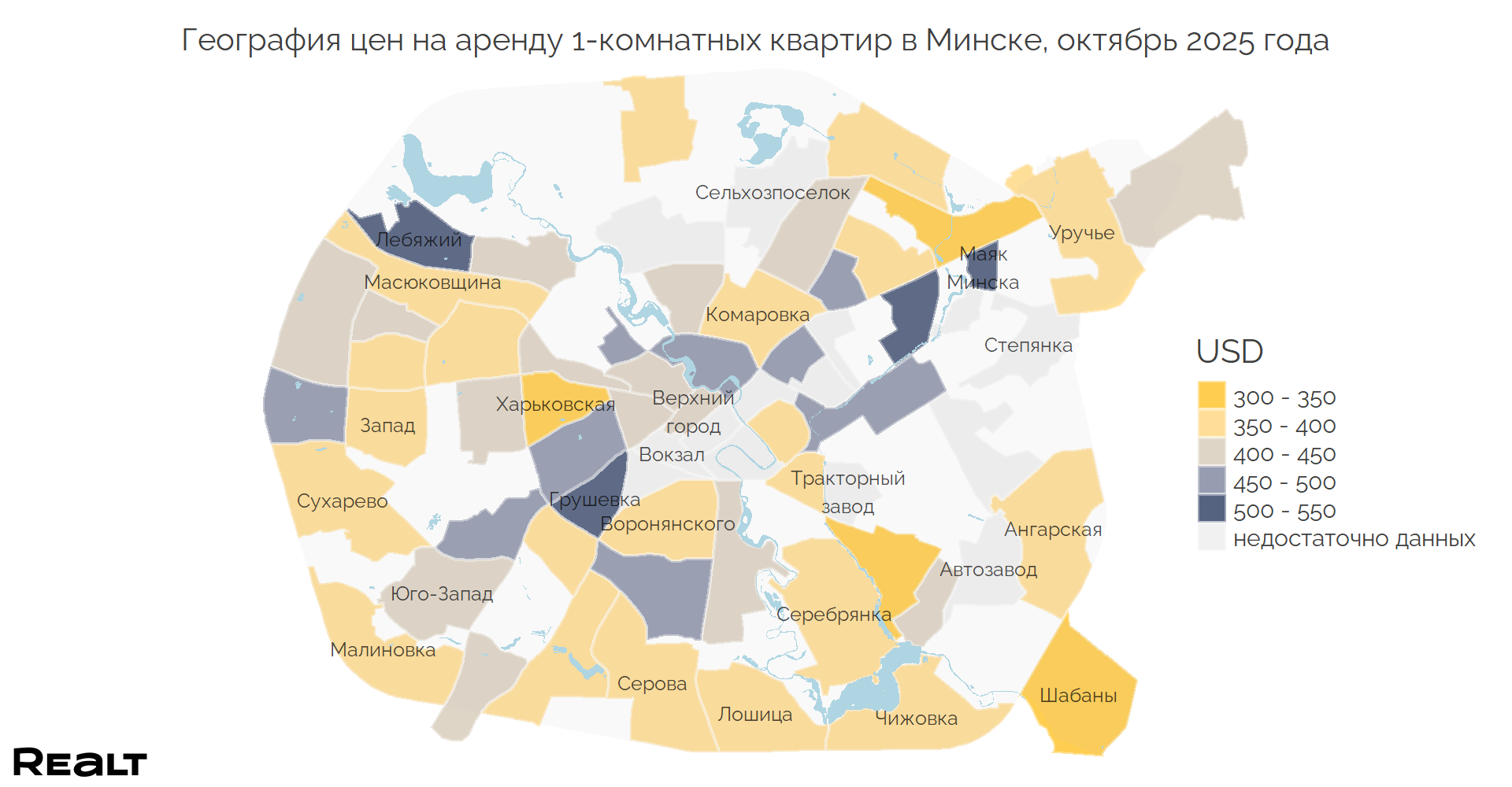 * 1-комнатные квартиры от 250 $. За эту стоимость выбор единичный и это будет квартира в старом жилом фонде и уставшем состоянии, в отдаленной от метро и основных транспортных магистралей локации. Вместе с приближением к отметке в 300 $ выбор начинает расширяться, но все равно остается представленным старым жилым фондом.