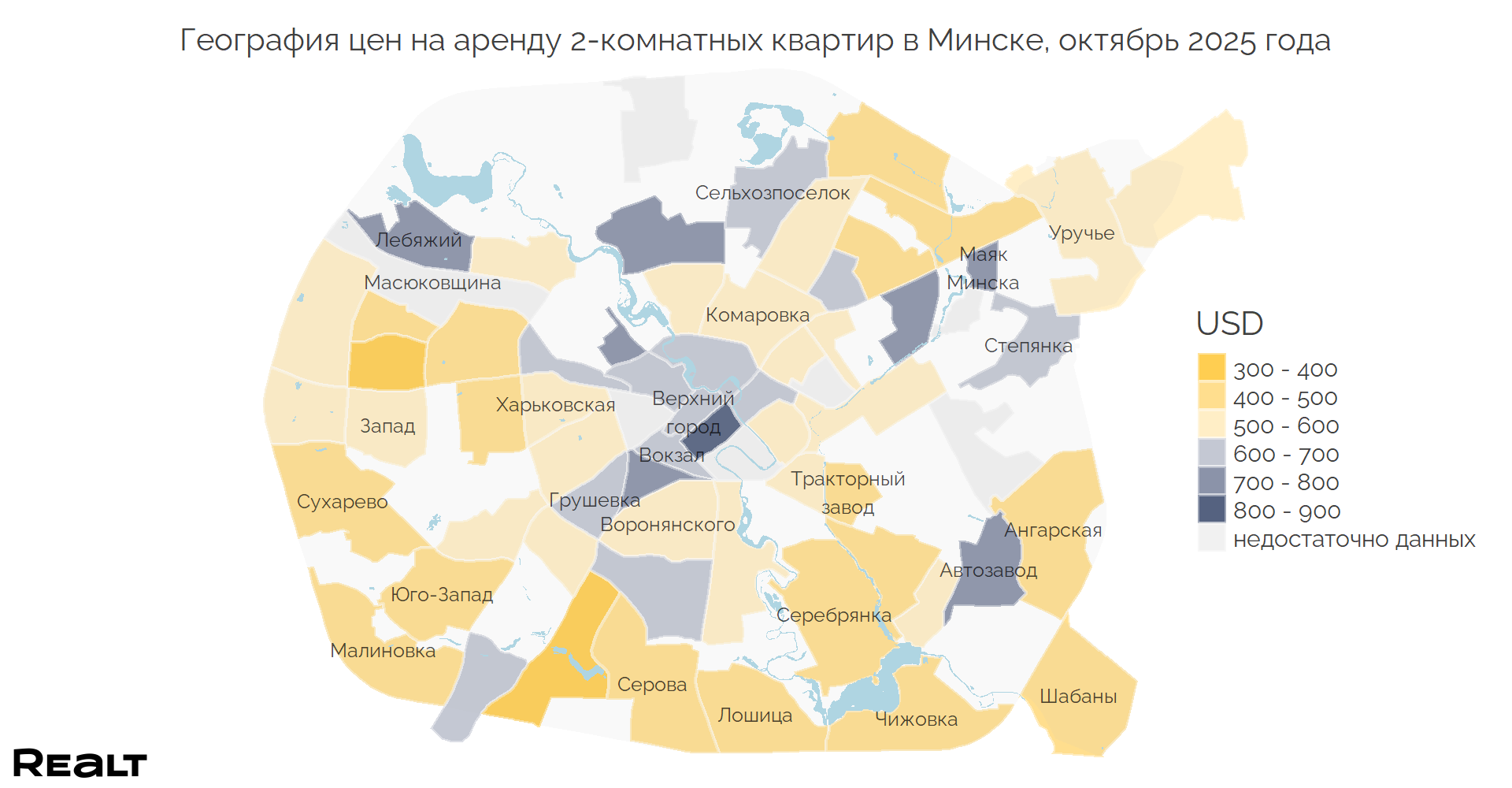 Самые дорогие квартиры в Центральном, Первомайском и Октябрьском районах. Последние два обязаны высокой стоимостью, как находящимся в их составе «Минск-Миру» и «Маяку Минска», так и линиям метро.
