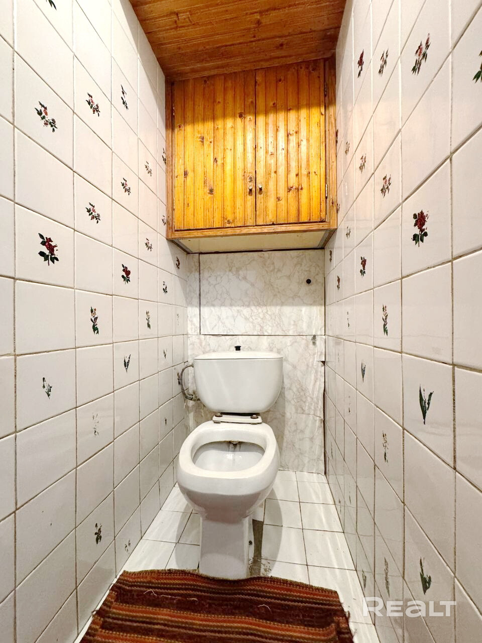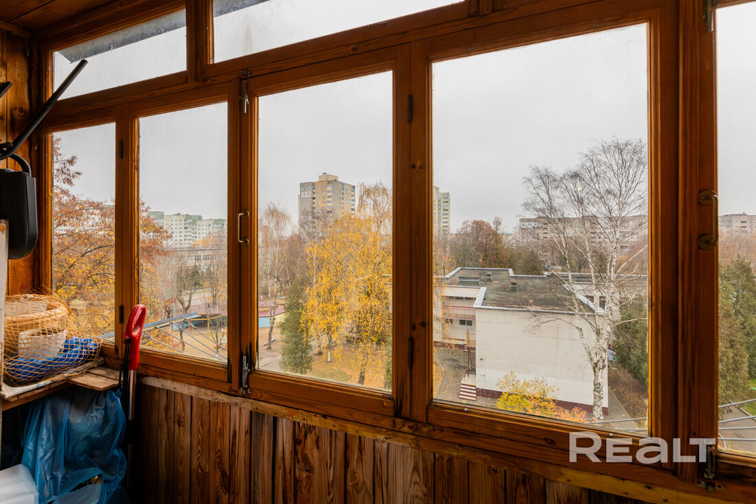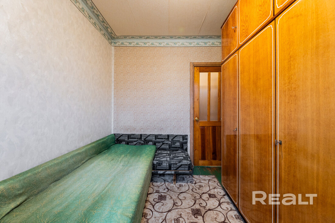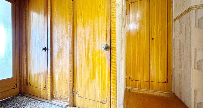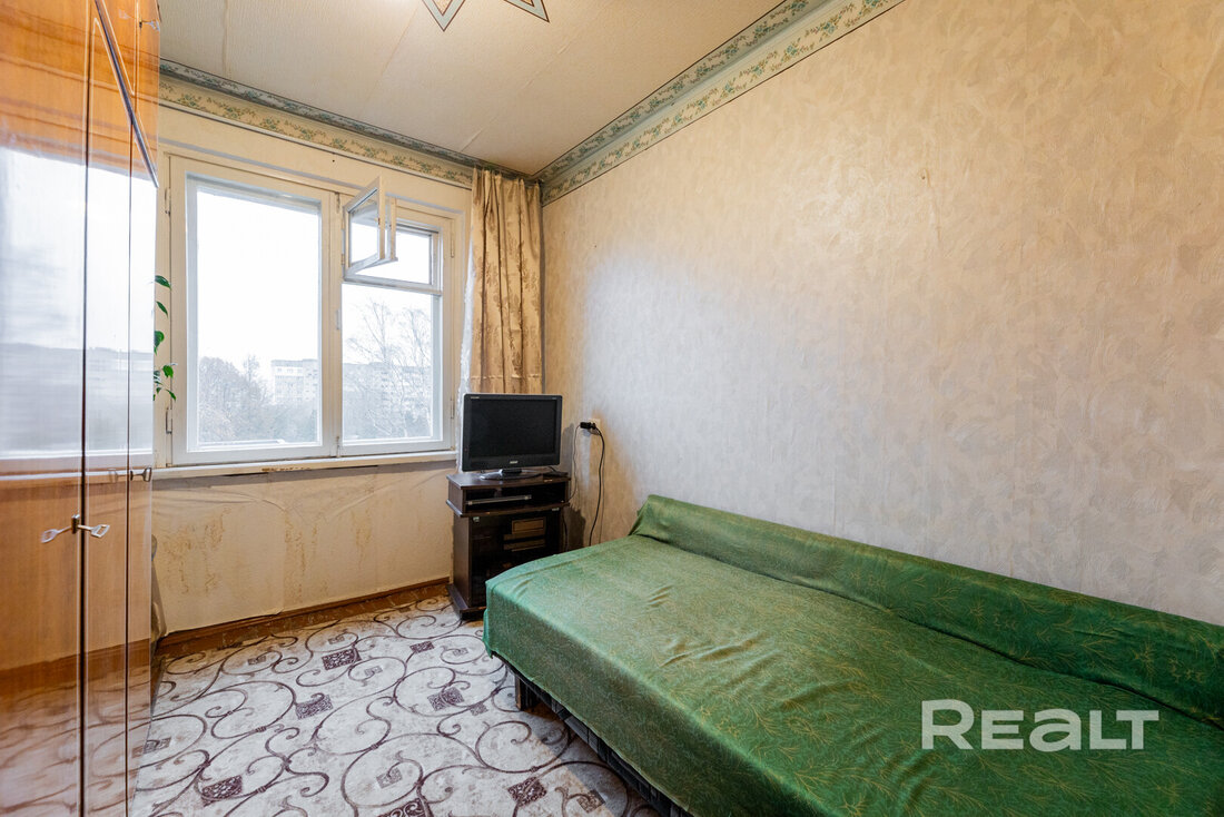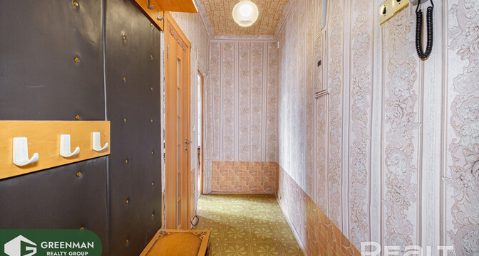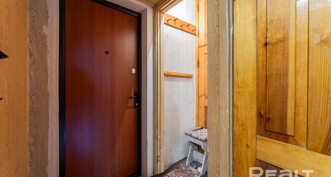 Здесь две изолированные комнаты. Есть балкон и кладовая. Квартира нуждается в обновлении. На полу лежат деревянные доски, оконные рамы тоже деревянные. После продажи остается мебель и техника.