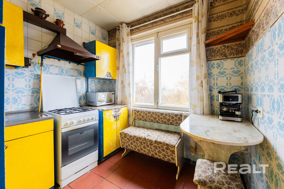 Пятиэтажный кирпичный дом на Ротмистрова, 10 построили в 1971 году. Квартира, что тут продается, находится на последнем этаже и занимает 49 квадратных метров. Кухня — 6,68 м².
