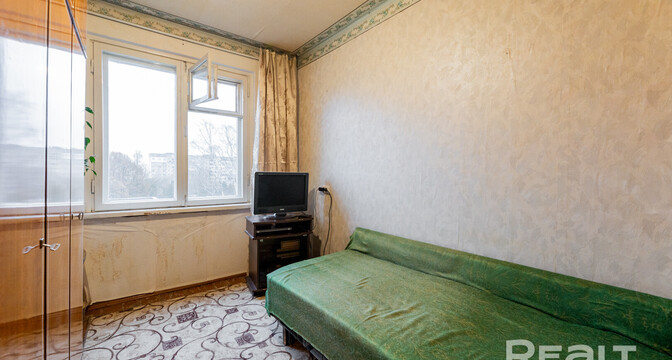 Жилье нуждается в обновлении. Тут разное напольное покрытие, в окнах стоят стеклопакеты.