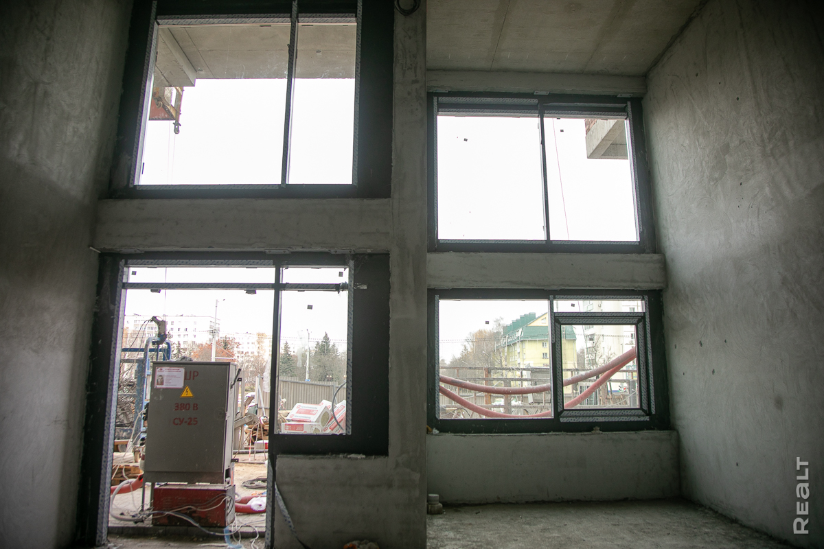 Также отмечаем большие окна со стеклопакетами с алюминиевыми рамами «АЛЮТЕХ», высококачественную черновую отделку (будут сделаны еще штукатурка и стяжки), чистоту внутри объектов.
