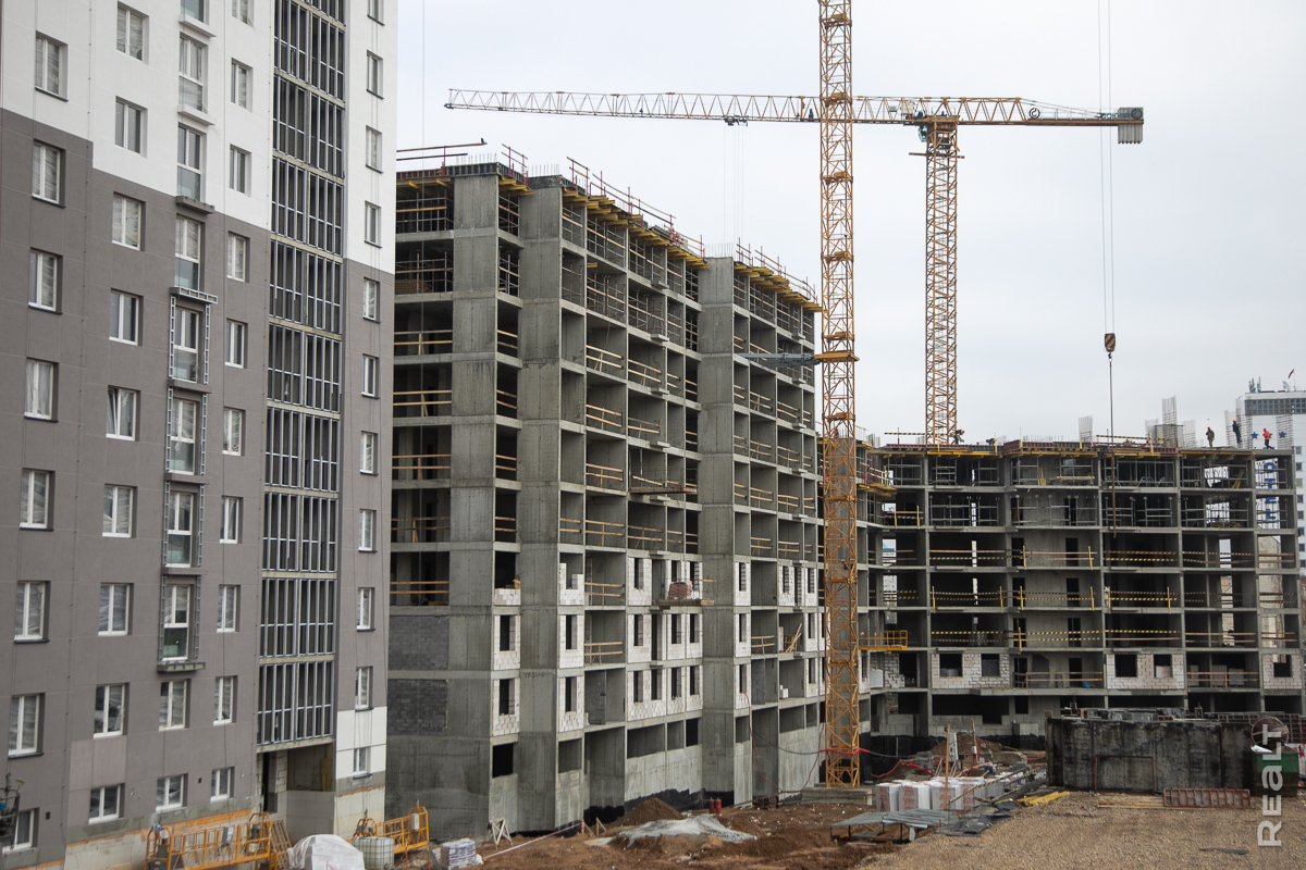 В августе мы посещали стройплощадку ЖК «Гулливер». Напомним: согласно проекту, здесь предусмотрено 6 домов. Работы ведутся на первых двух. Они 19-этажные, каркасные. В первом 5 подъездов, во втором — 4. Лифты и подъезды делают с учетом требований безбарьерной среды.