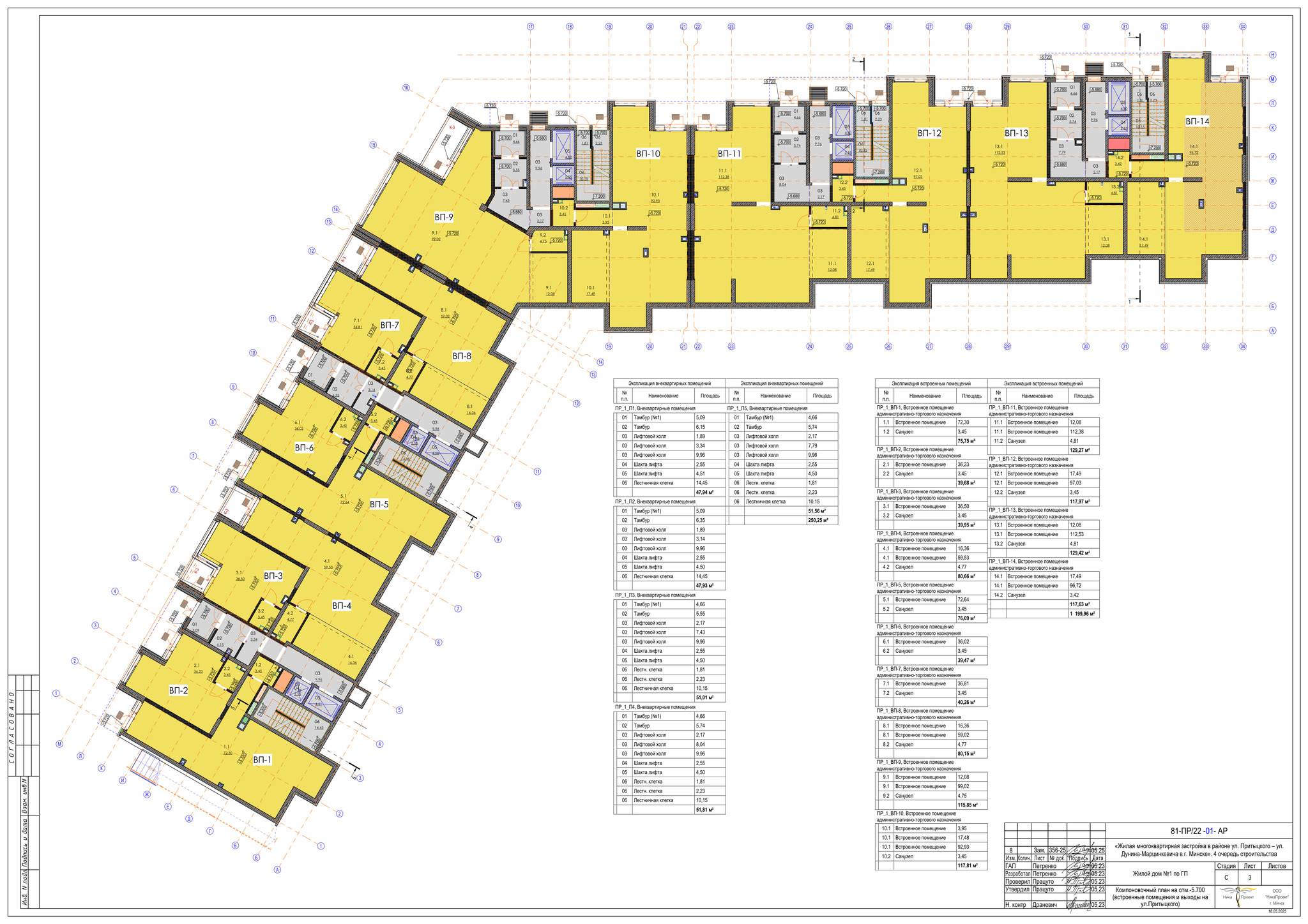 Уделим внимание нескольким планировкам. Так, например, встроенное помещение площадью 75,79 м² в первой секции дома с отдельным входом в направлении ул. Притыцкого / ул. Жудро.
