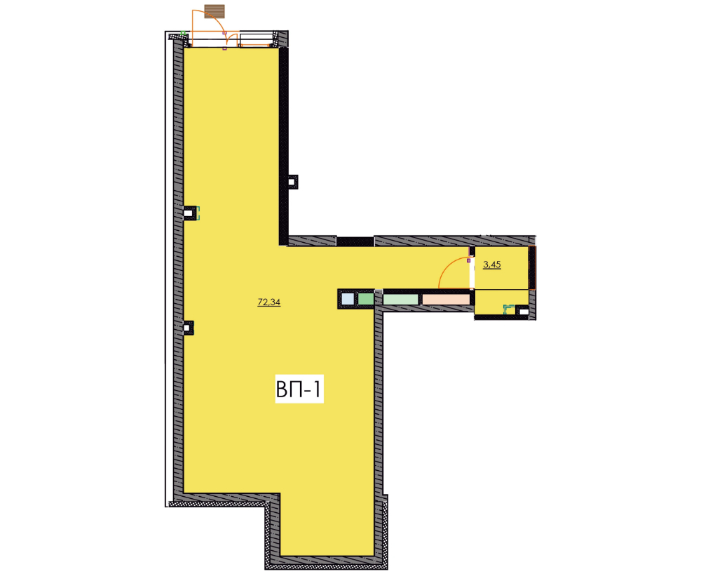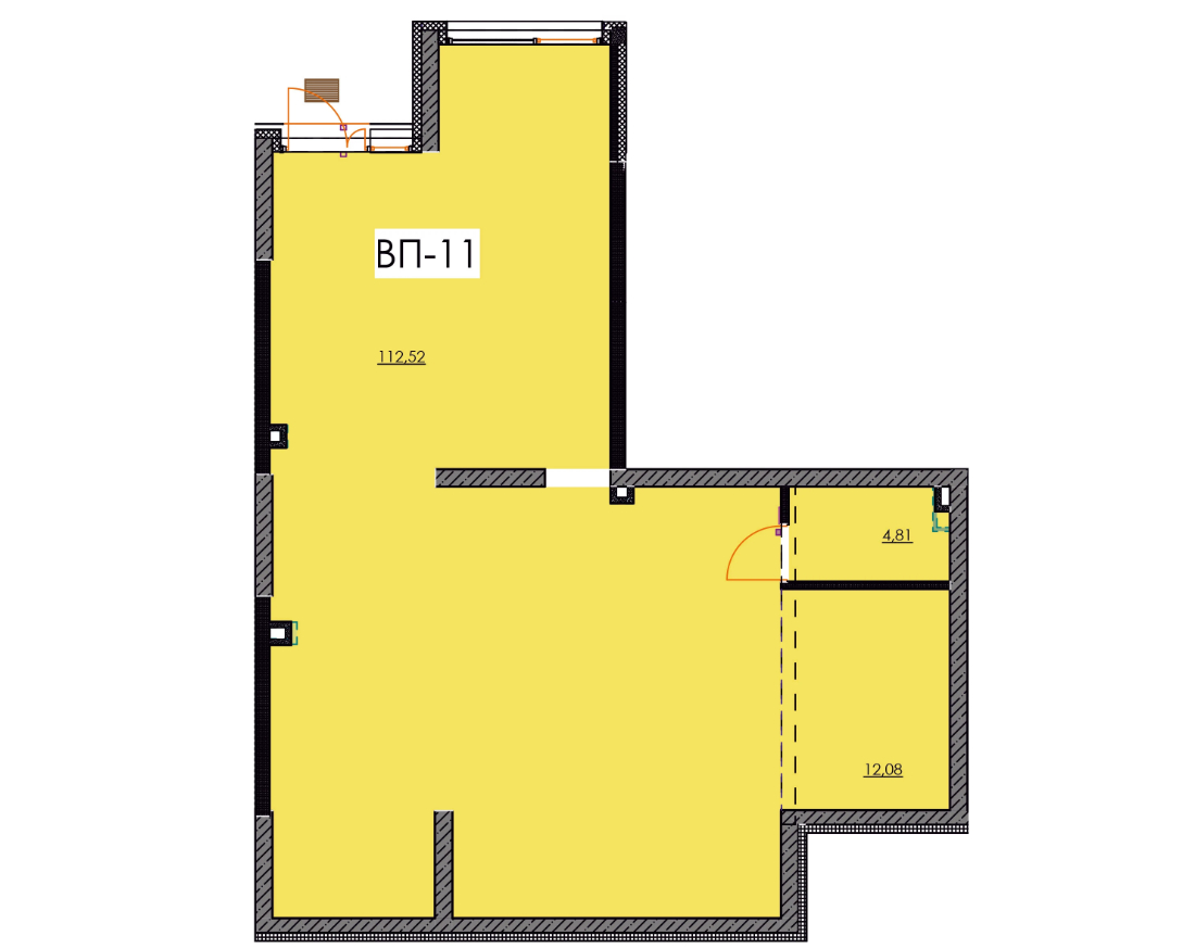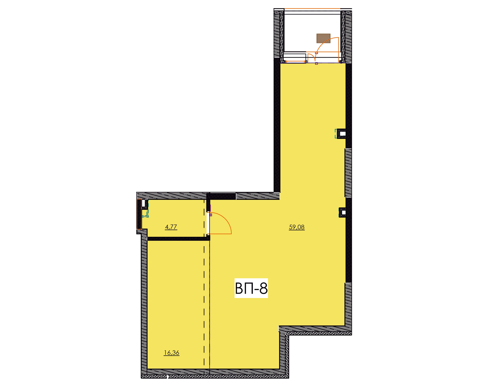 Встроенное помещение площадью 80,21 м² во второй секции с отдельным входом в том же направлении.
