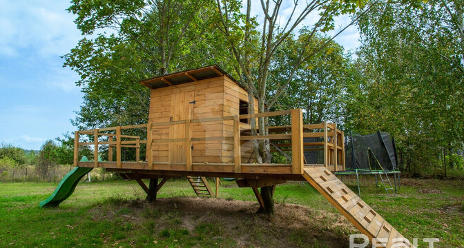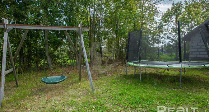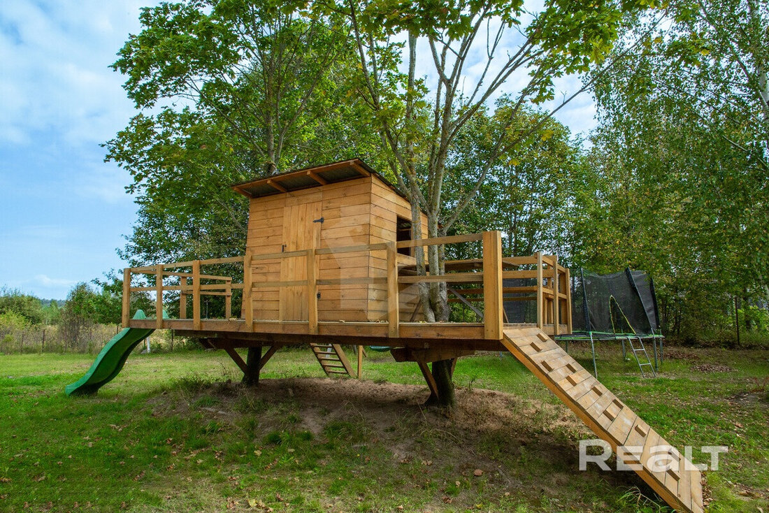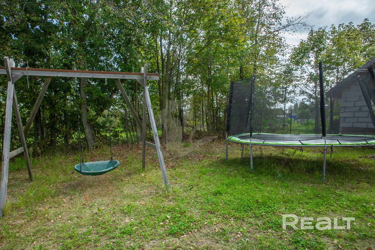На огороженном ровном участке в 25 соток сделана детская игровая зона и стоит хозпостройка. Установлено видеонаблюдение.