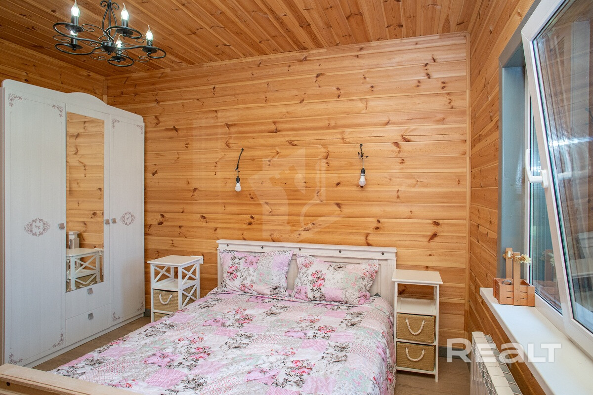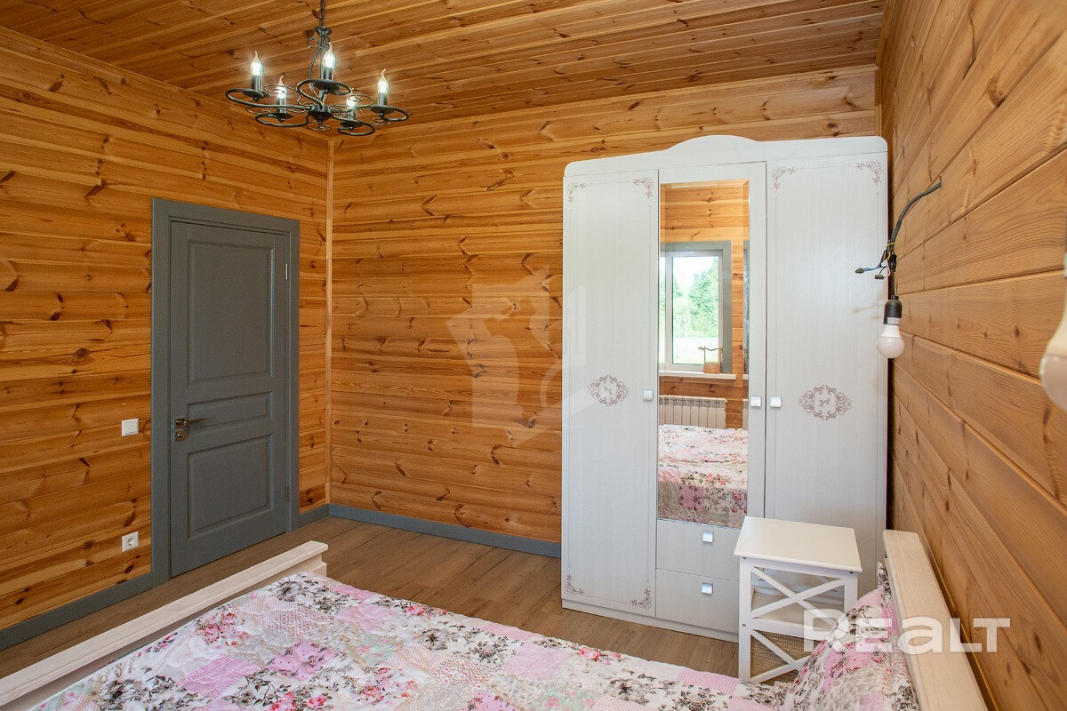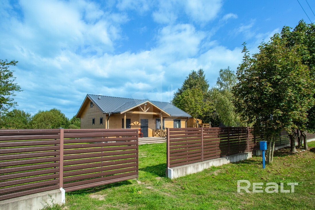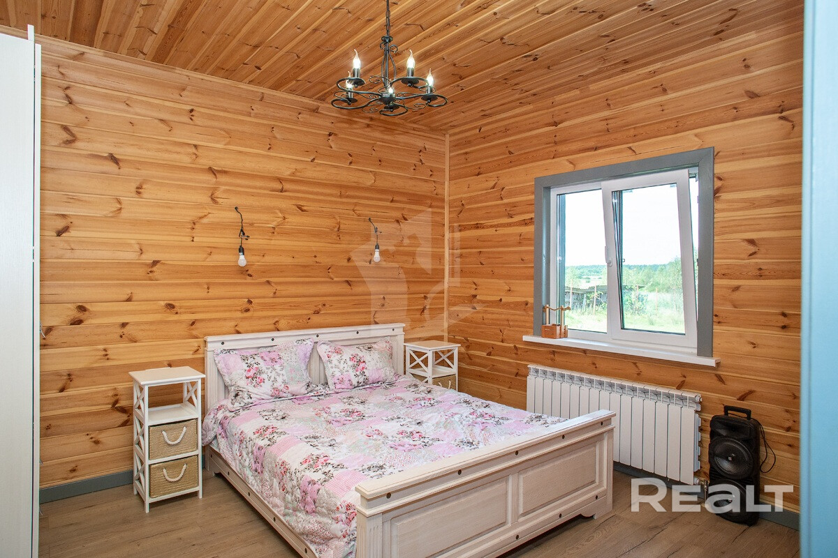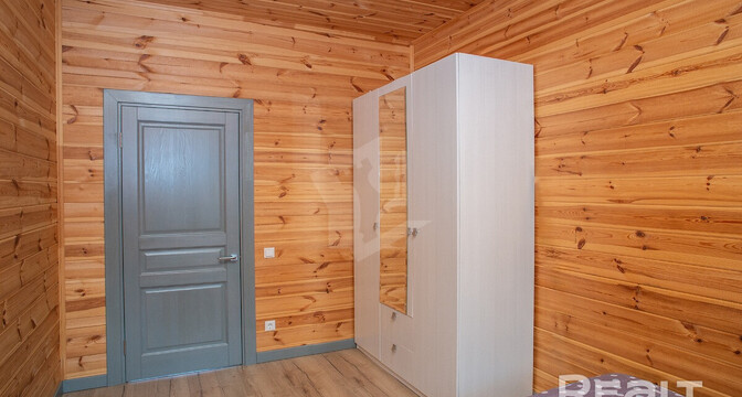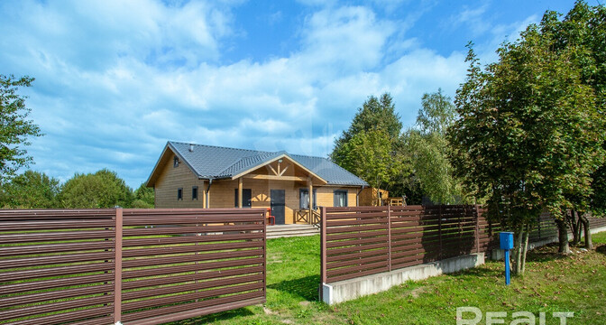 Деревня Первый Май находится в 60 от Минска в Пуховичском районе. Там сейчас продается одноэтажный бревенчатый дом 2024 года постройки. На крыше лежит черепица. Он занимает 83,7 м².