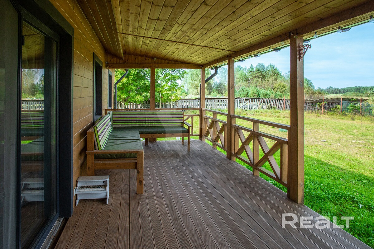 В 60 км от Минска, в деревне продается милый дом с террасой. Он кажется небольшим, но внутри обустроены три комнаты и одна общая зона. Загородное жилье может составить конкуренцию квартире, ведь тут введены коммуникации, есть мебель и техника, а цена — ниже, чем за такие же квадраты в городе. Из приятных бонусов — свой большой участок и школа, магазины неподалеку. Показываем, как все выглядит.