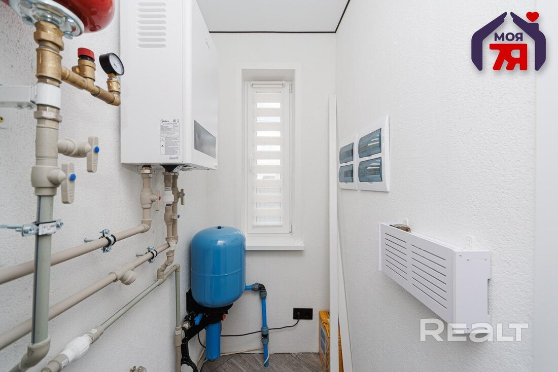 Отапливается дом электричеством (в СТ действует льготный тариф — 4 копейки!). Во всем доме сделаны теплые полы, уложена плитка. Вода — скважина, канализация — местная (два колодца). По комнатам уже разведен интернет, а в ближайшее время проведут оптоволокно. Электричество выделено 15 квт на отопление и 20 квт на быт.