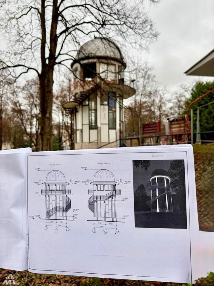 На начальном этапе демонтируют все устаревшее. Далее конструктив восстановят, смонтируют новые витражные системы, проложат сети электроснабжения, выполнят отделку и благоустройство. У здания появится новый купол с вращением на 360° со специальными створками. А каждая колонна будет с подсветкой.