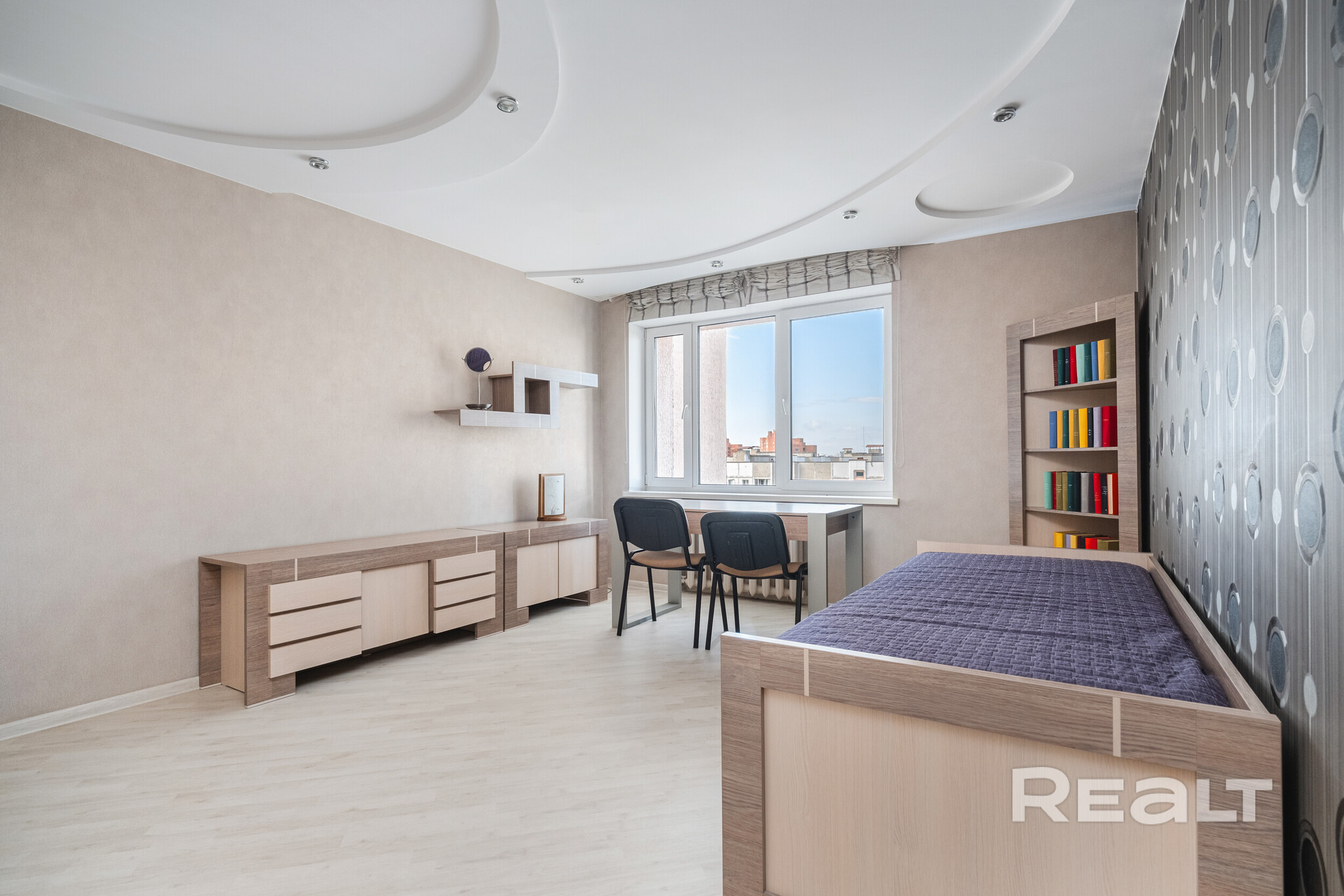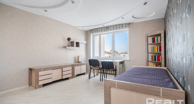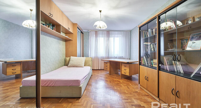 Первая — просторная четырехкомнатная квартира на шестом этаже. Общая площадь жилья составляет 113 квадратов. Квартира состоит из кухни и четырех отдельных комнат. В четырешке выполнен хороший ремонт. Есть кухня, мебель, встроенные шкафы. Продают квартиру за 179 тысяч долларов (1584 доллара — за метр). В цену включены два парковочных места!
