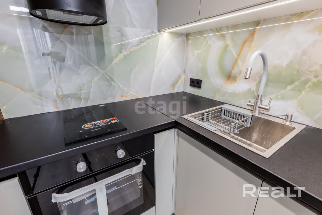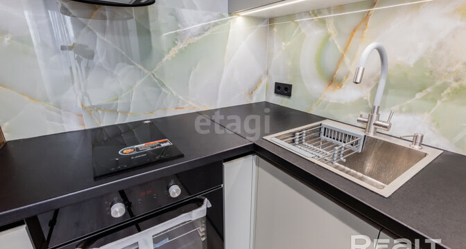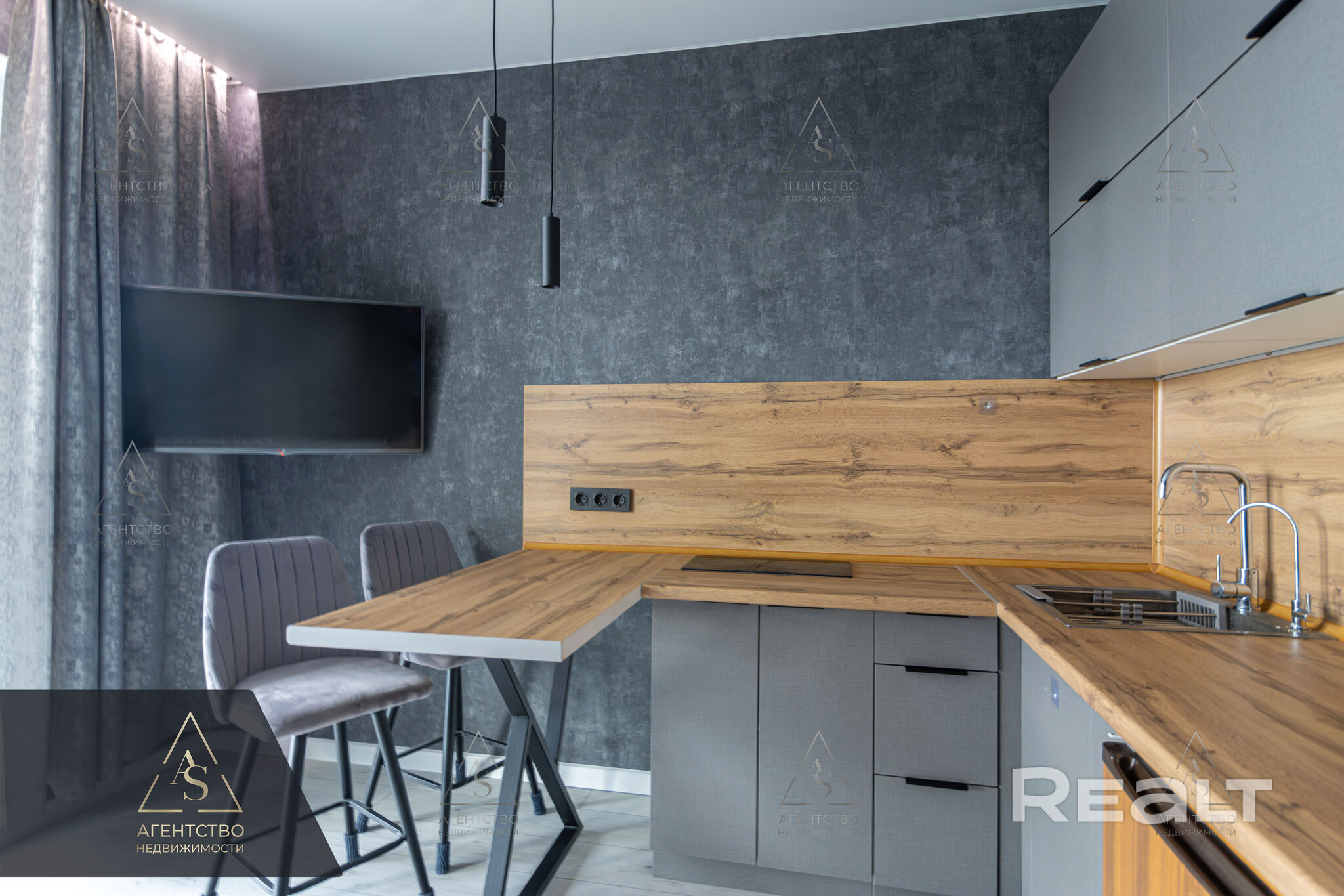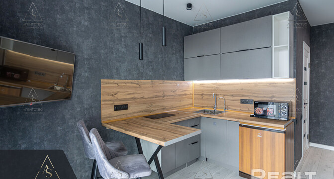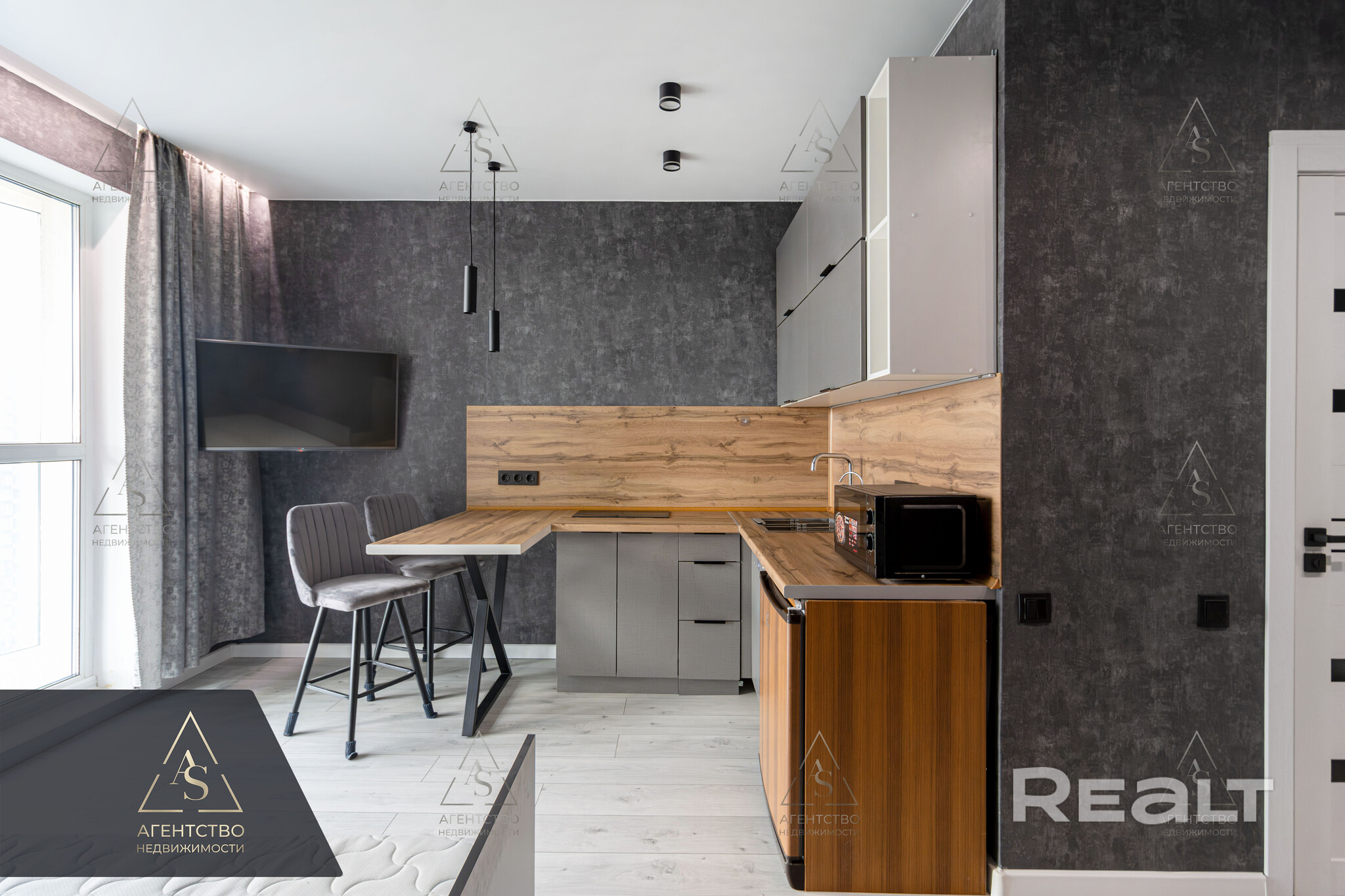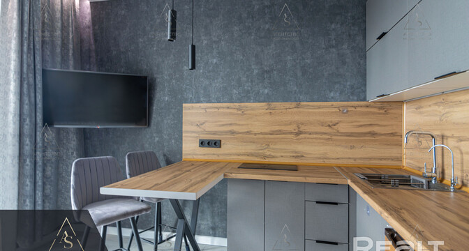 Еще один вариант из Минск-Мира, но с более брутальным ремонтом — студия по адресу Савицкого, 12. Это 16-этажный дом в квартале «Азия». До станции метро «Аэродромная» около пяти минут пешком.