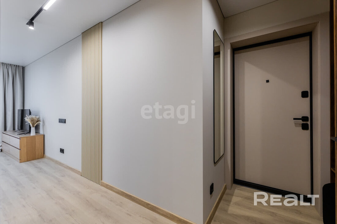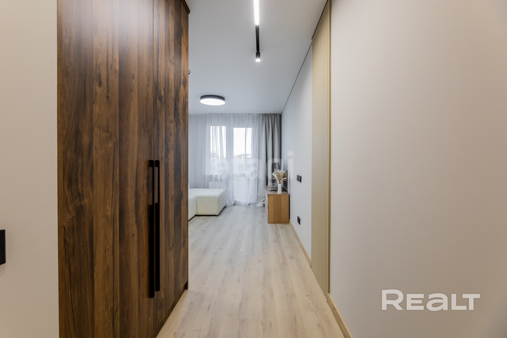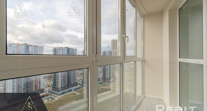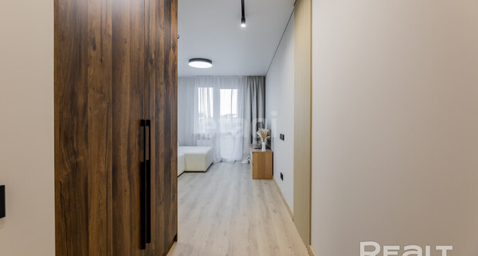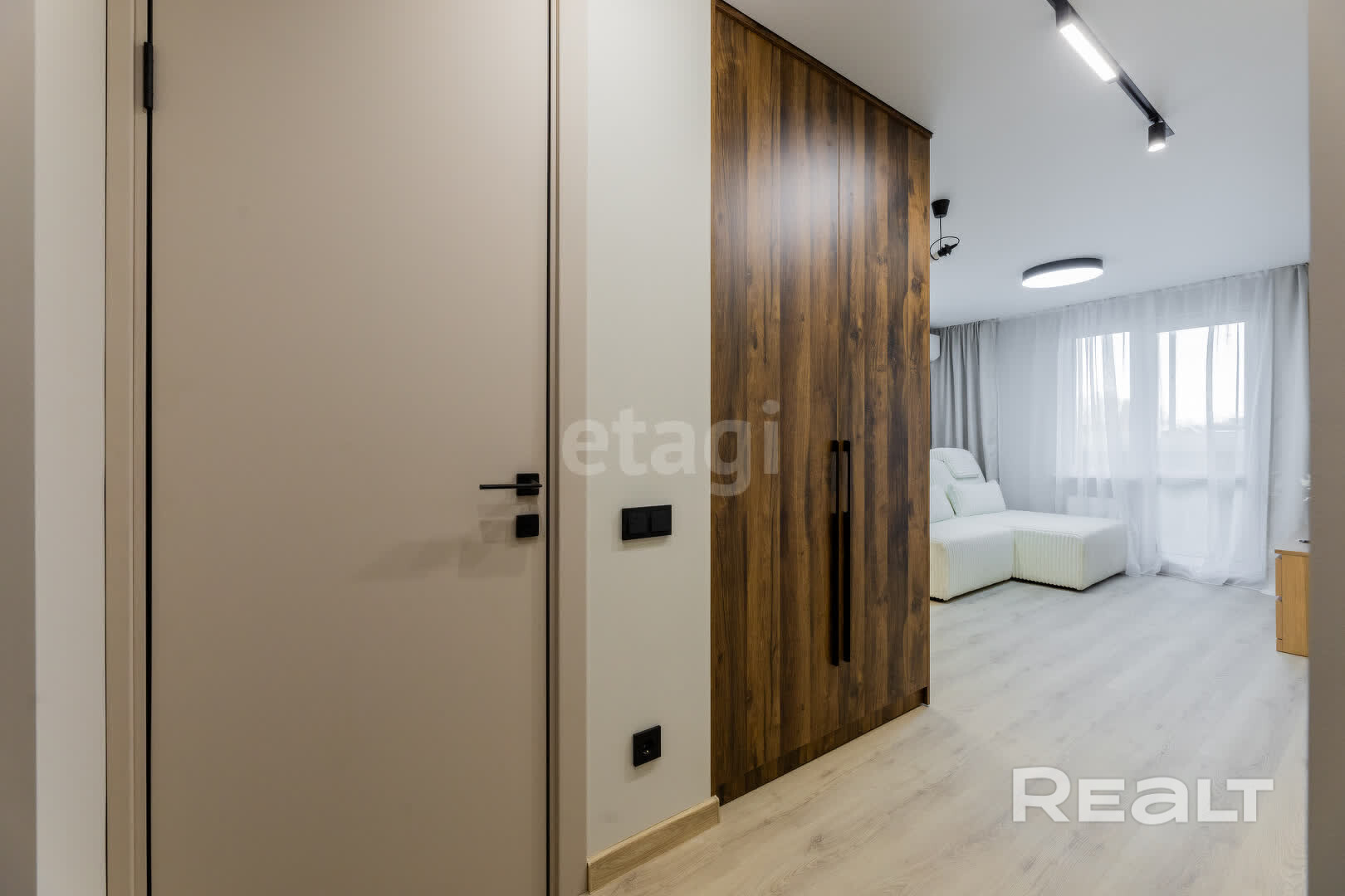 Начинаем нашу подборку с квартиры-студии в Минск-Мире по адресу Жореса Алферова, 16. Это 25-этажный дом 2023 года в квартале «Тропические острова». Рядом с домом остановка общественного транспорта.