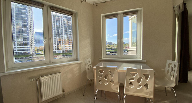 Последний и самый дорогой вариант подборки — квартира-студия в ЖК Vogue около парка Челюскинцев. Находится на 14-м этаже 25-этажного дома по адресу Макаенка, 12Д.