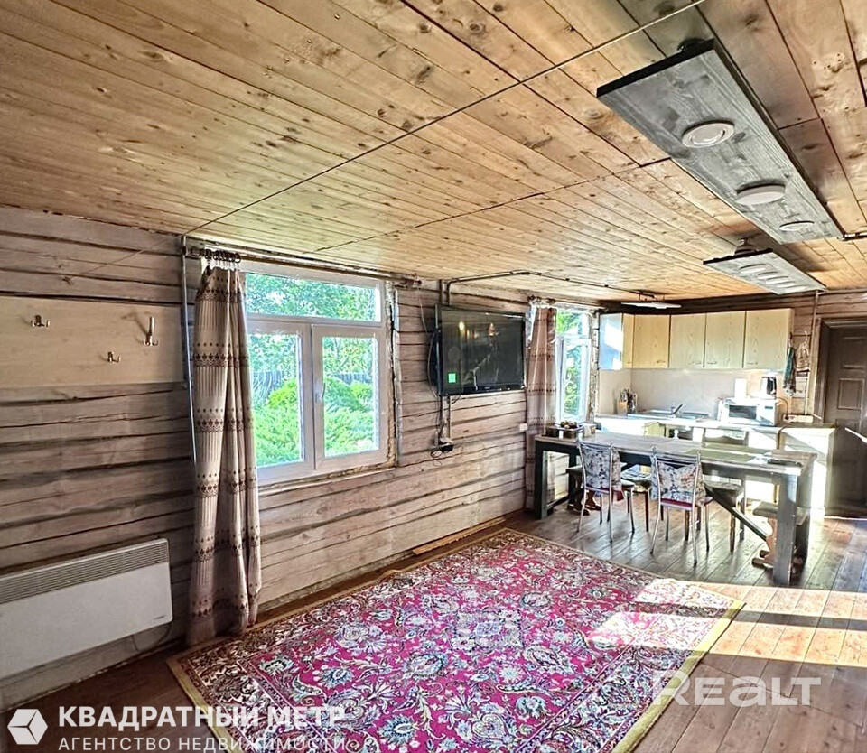 Нашли симпатичный деревянный дом в деревне в Мядельском районе. Он находится рядом с озером Вишневское, поблизости еще два озера, в том числе Нарочь. Сруб стоит на большом участке, он пригоден к круглогодичному проживанию, с несколькими спальнями и крытой террасой. Посмотрите, как он выглядит. Кстати, просят за него в два раза меньше, чем за квартиру.