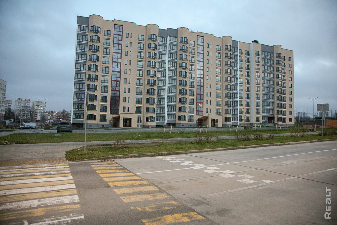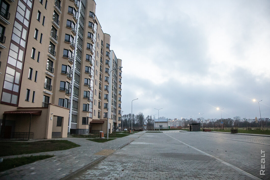 Именно на улице Степана Злобина (журналиста и выжившего узника лагеря военнопленных в Масюковщине) мы замечаем первую новостройку. Это — панельный десятиэтажный дом на 4 подъезда и 168 квартир. Фасад у многоэтажки получился достаточно сдержанным, но стильным. В новом доме можно заметить большие окна, эркеры и входы в подъезд с уровня земли. В общем, про современные тренды тут не забыли.