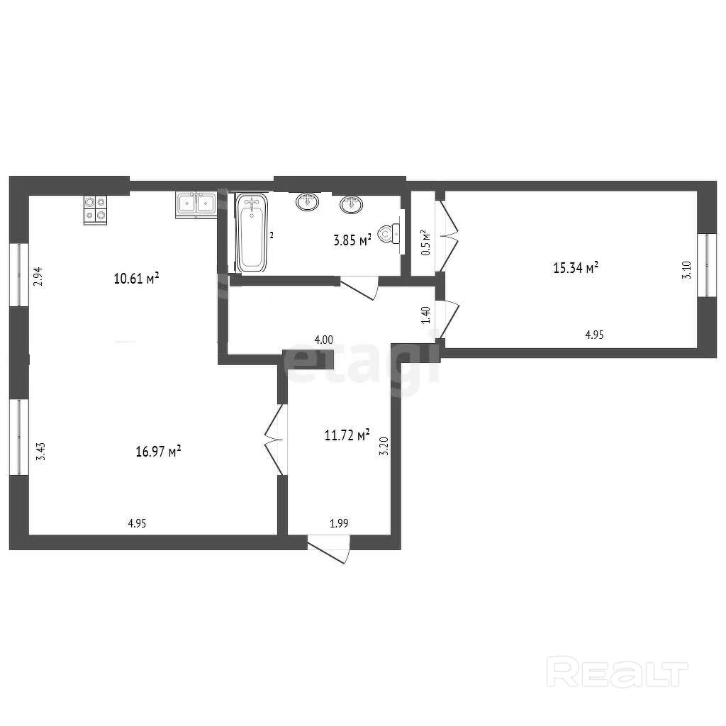 Сейчас тут выставлена на продажу квартира на первом этаже. Площадь двушки — 60,41 м².