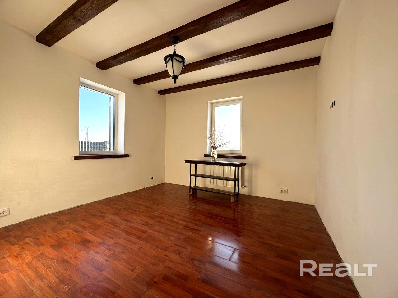 В объявлении говорится, что дом строился «для себя», то есть качественно. Фундамент под ним монолитный, стены из блоков, фасад утеплен и оштукатурен, на крыше — металлочерепица. Перекрытия — деревянные балки с утеплением. Окна ПВХ с ламинацией (профиль KBE). Мансарда утеплена (200 мм).