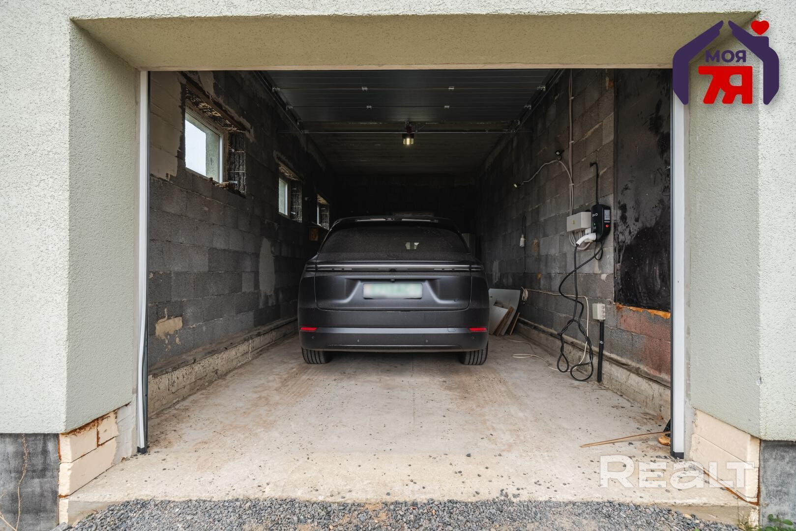 Около входа расположилась крытая терраса. Гараж идет с розеткой для зарядки электромобиля. Его также можно использовать как мастерскую или зону хранения.